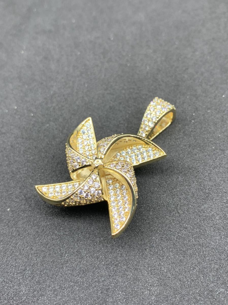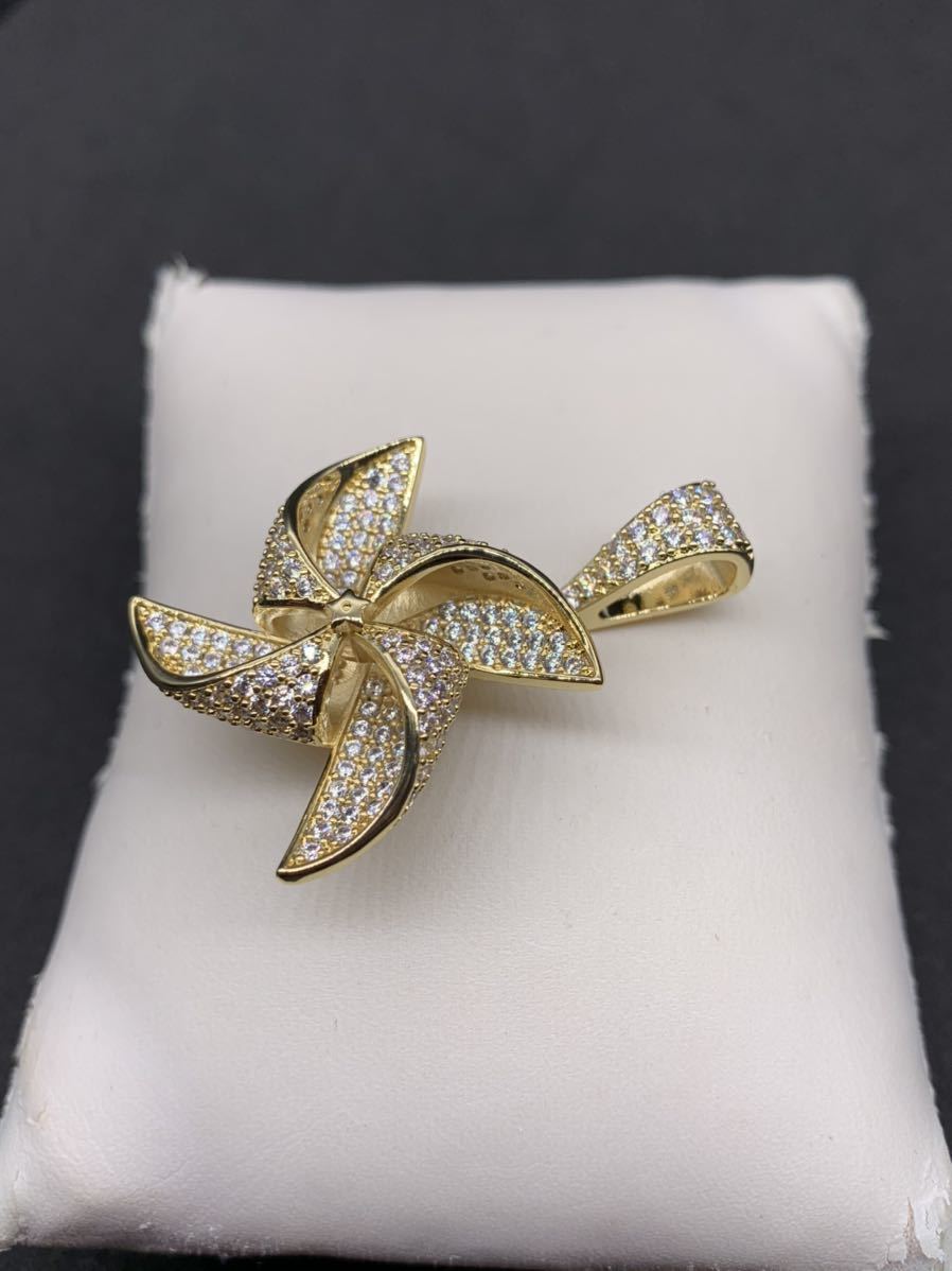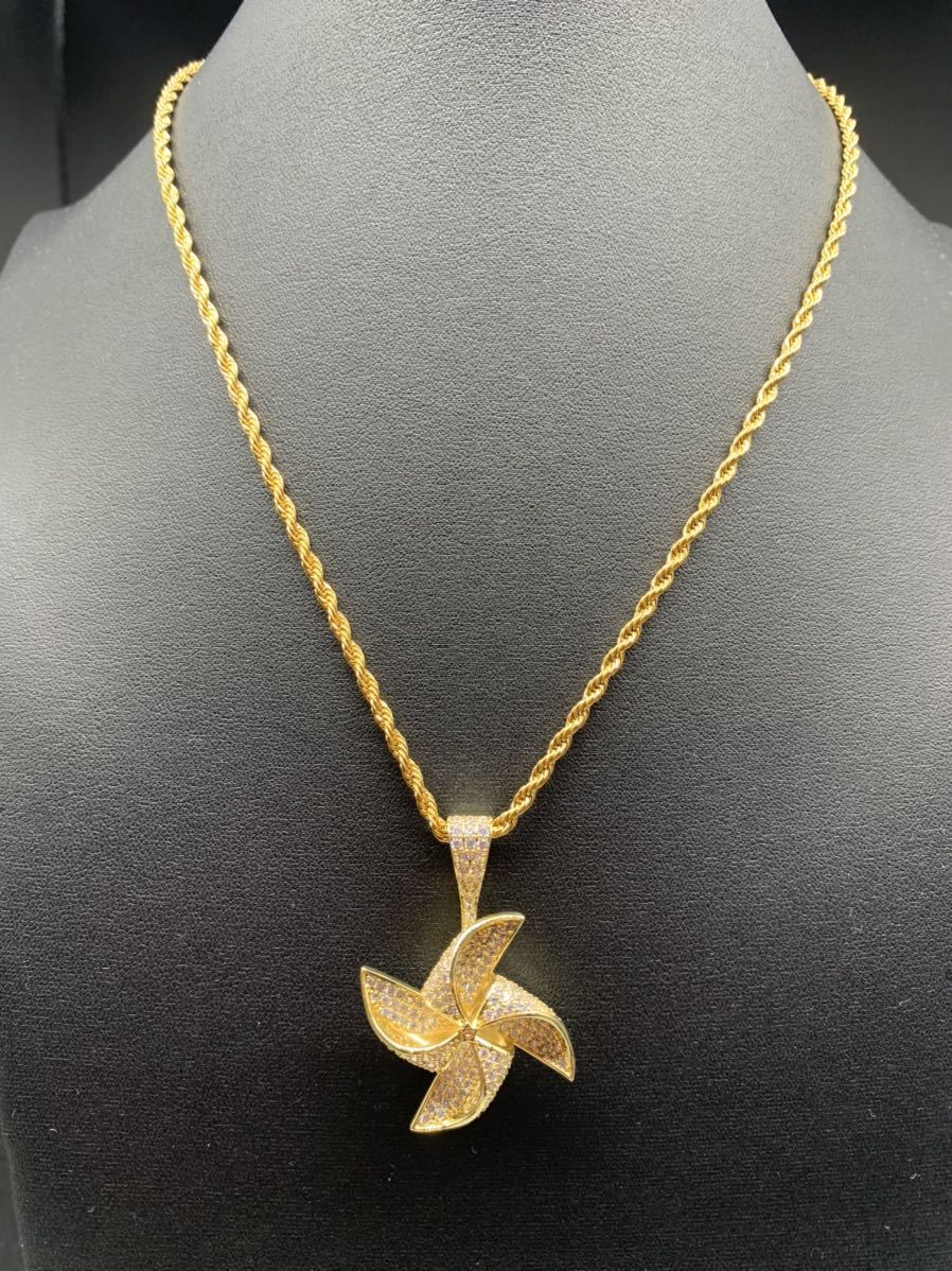 ジルコニアがキラキラと輝く 風車 デザインの美しいネックレスです。