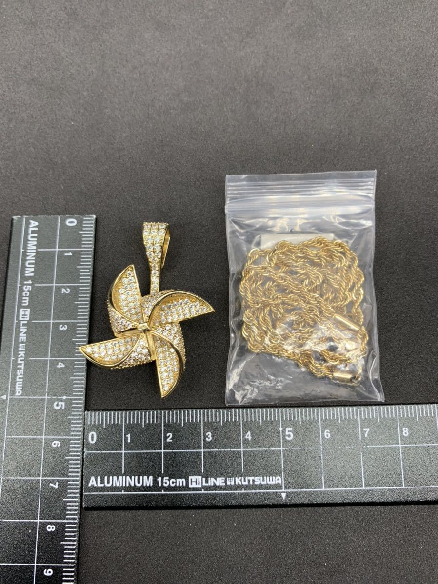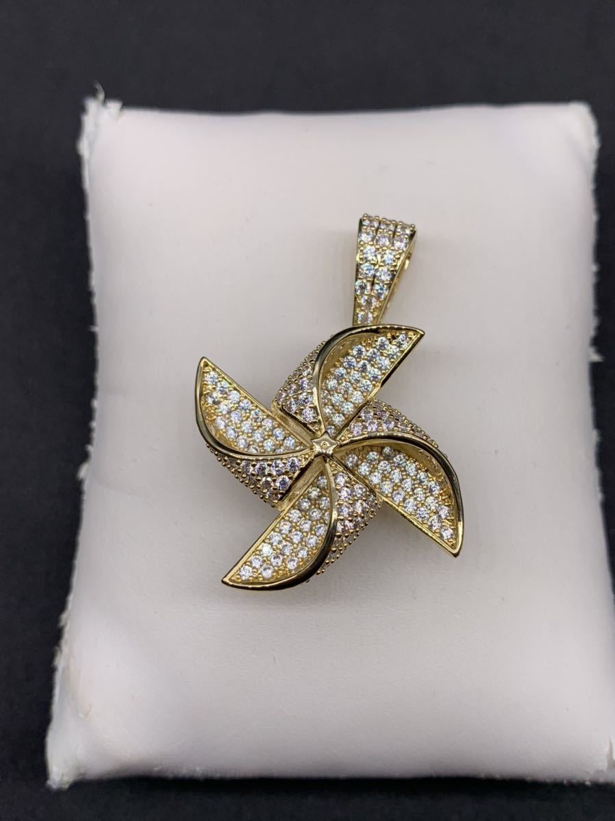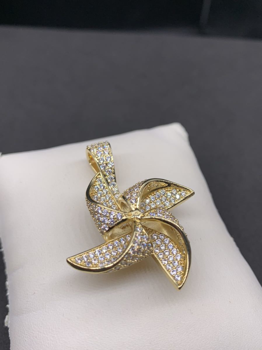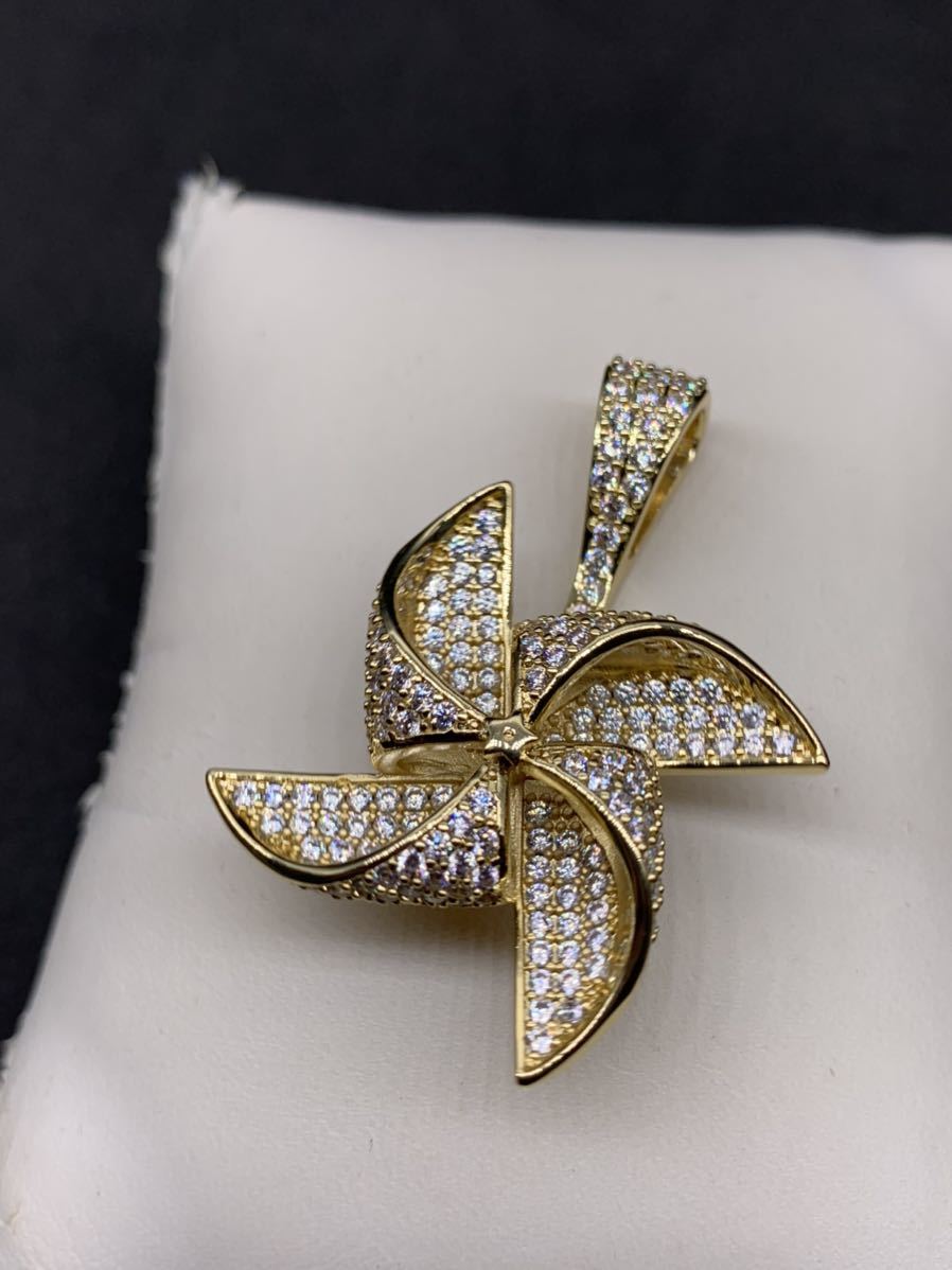 ジルコニアがキラキラと輝く 風車 デザインの美しいネックレスです。