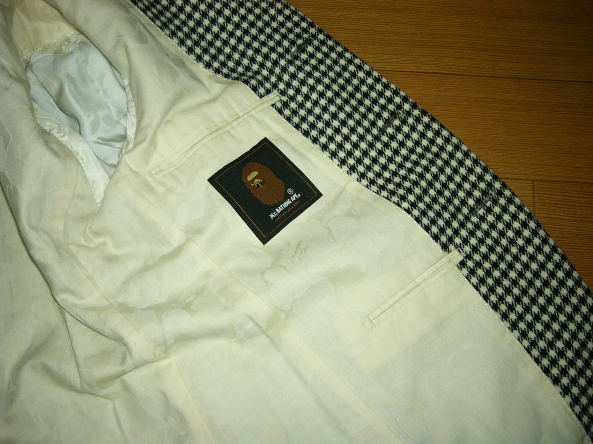エイプ Mr.BATHING APE ウール テーラード ジャケット 44 黒チェック / 裏地迷彩柄