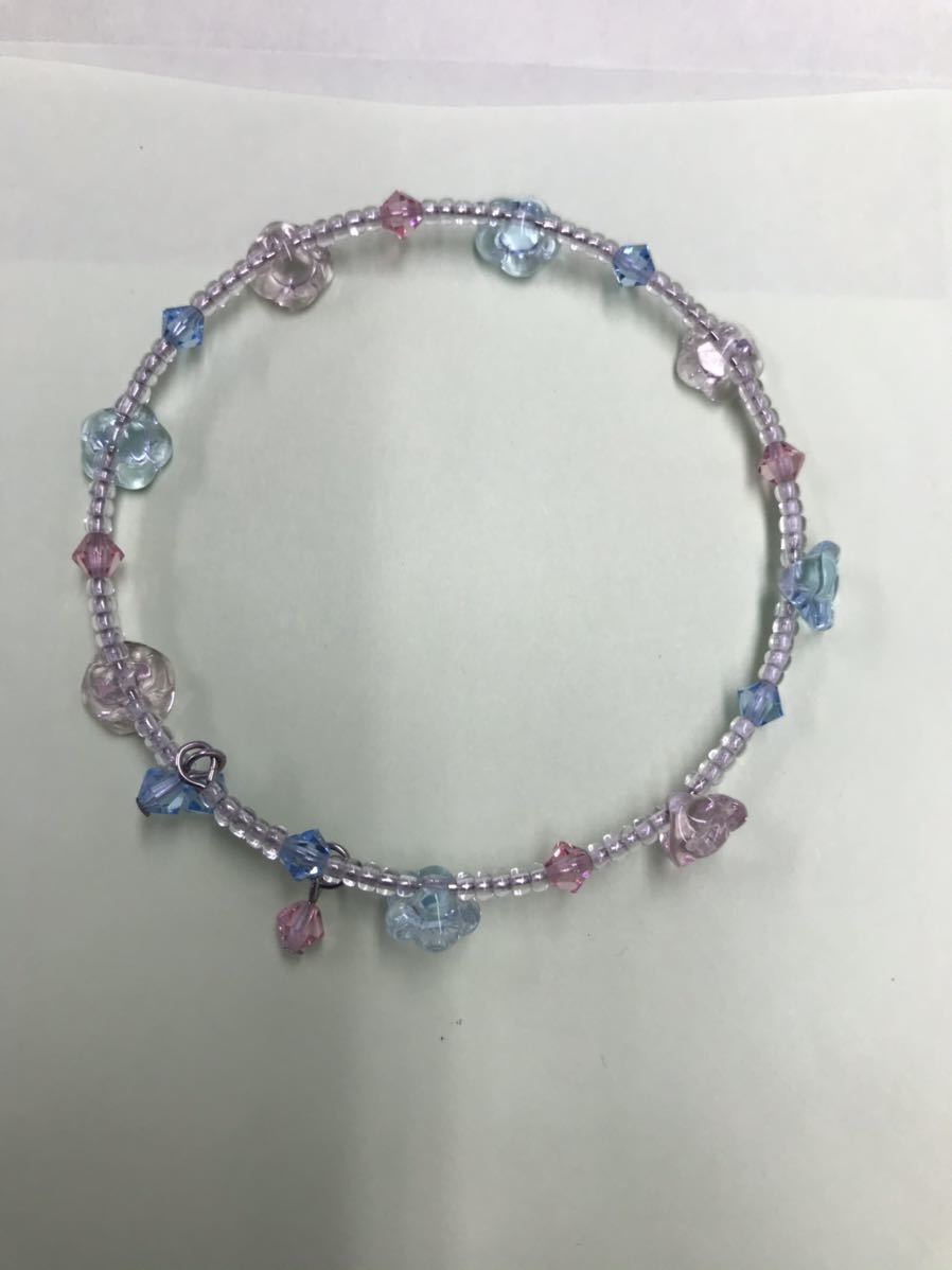 パステルカラーのビーズで作られているブレスレットです。腕に巻きつけて留め金がないタイプなので、ストレスなくつけれます。私は腕周り15.5センチでぴったりでした。5回ほど着用しました。