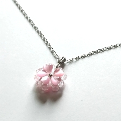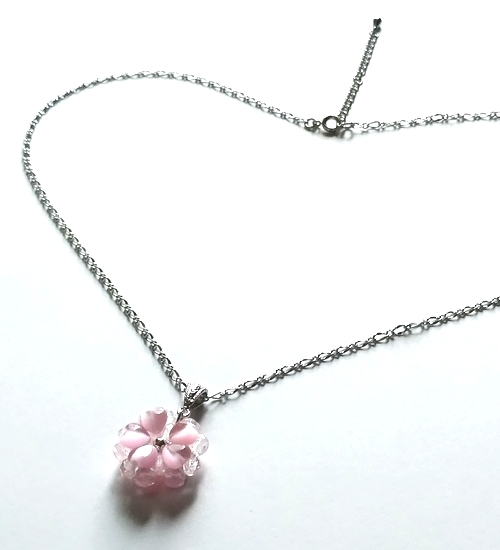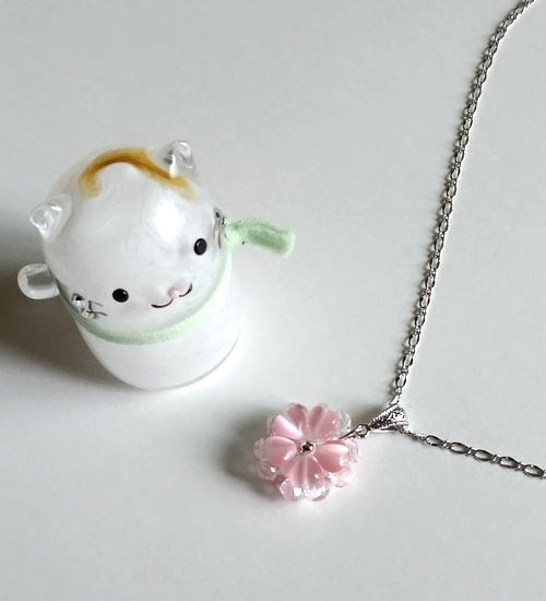 桜のネックレス♪Selectピンク♪grande:春のさくらをイメージしたネックレス♪キャッツアイの猫目が光に反射すると綺麗なグラデーション