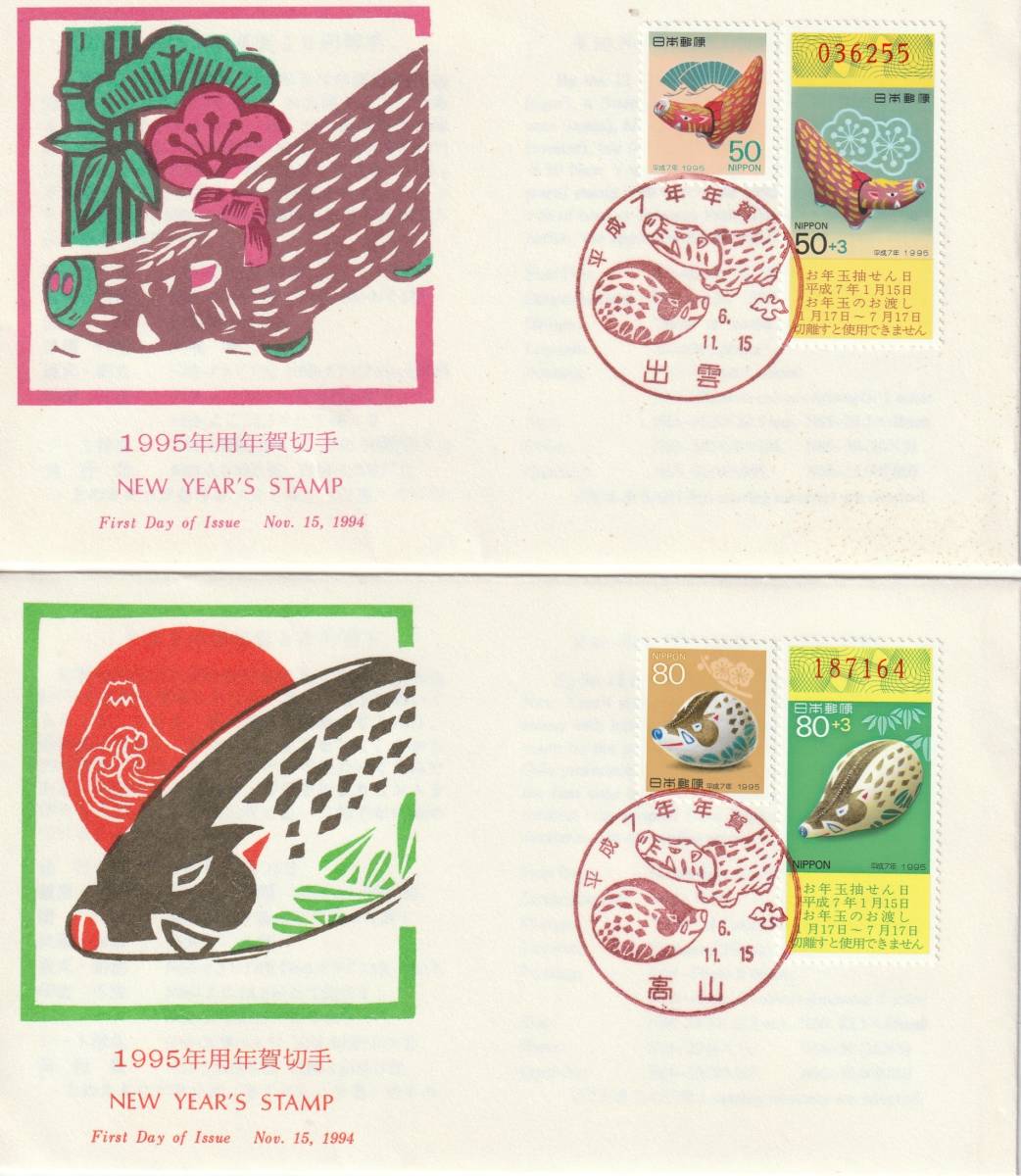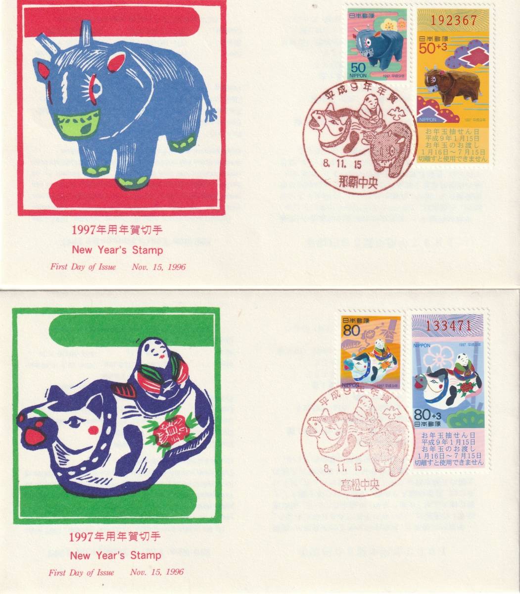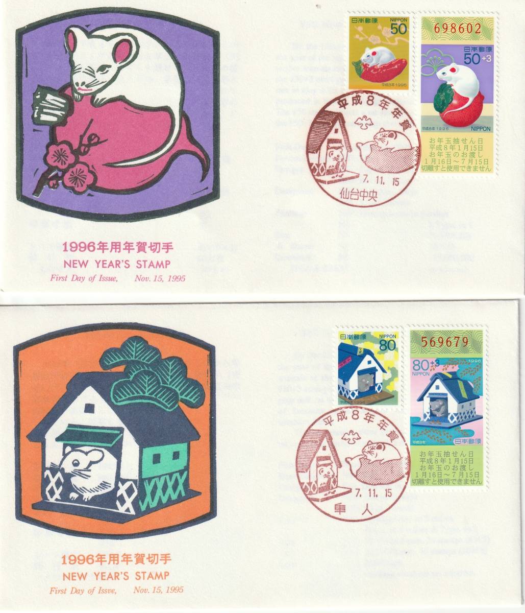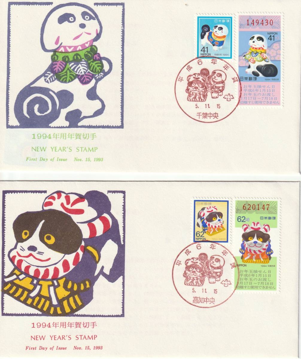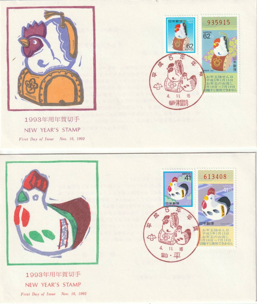 FDC 1992-96年  年賀切手 41円62円  10通  JPS