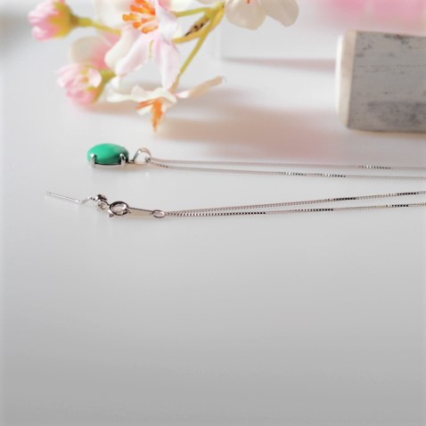 今回のトルコ石は原石の石質よって裏側に自然形成でできた窪みが入っていますが、全体的に清新な印象を感じます。