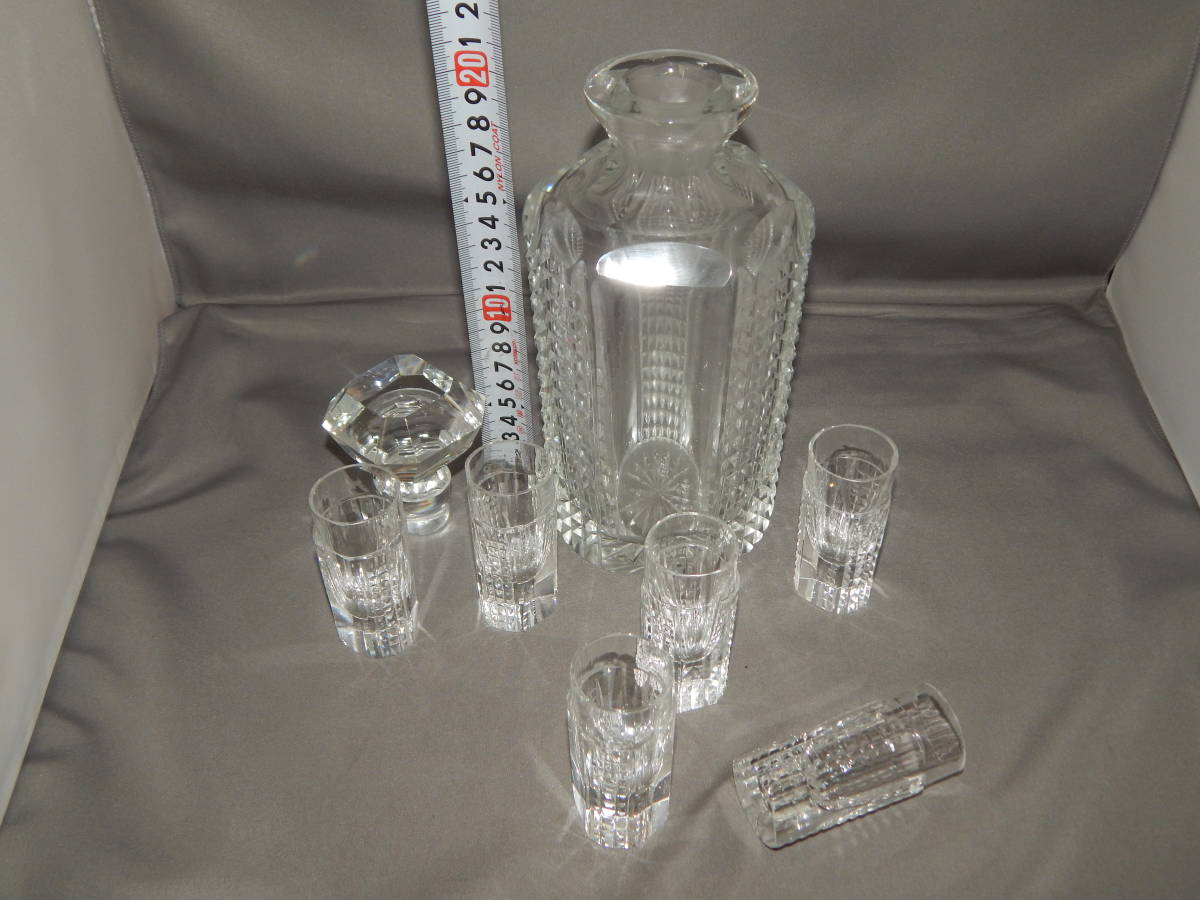 昭和レトロ ハンドカット  デキャンタ ショットグラスセット・ショットグラス1個に縁キズ