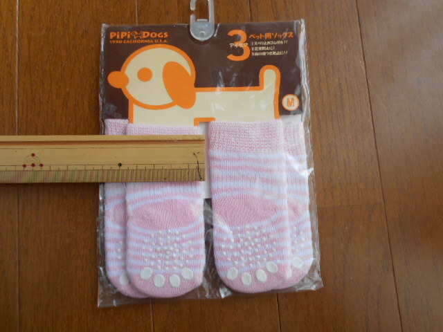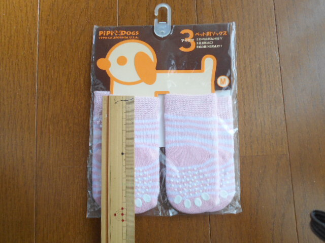 小型犬☆PiPi DOGS ナチュラルボーダーソックス M ピンク 5.9×5 肉球保護等