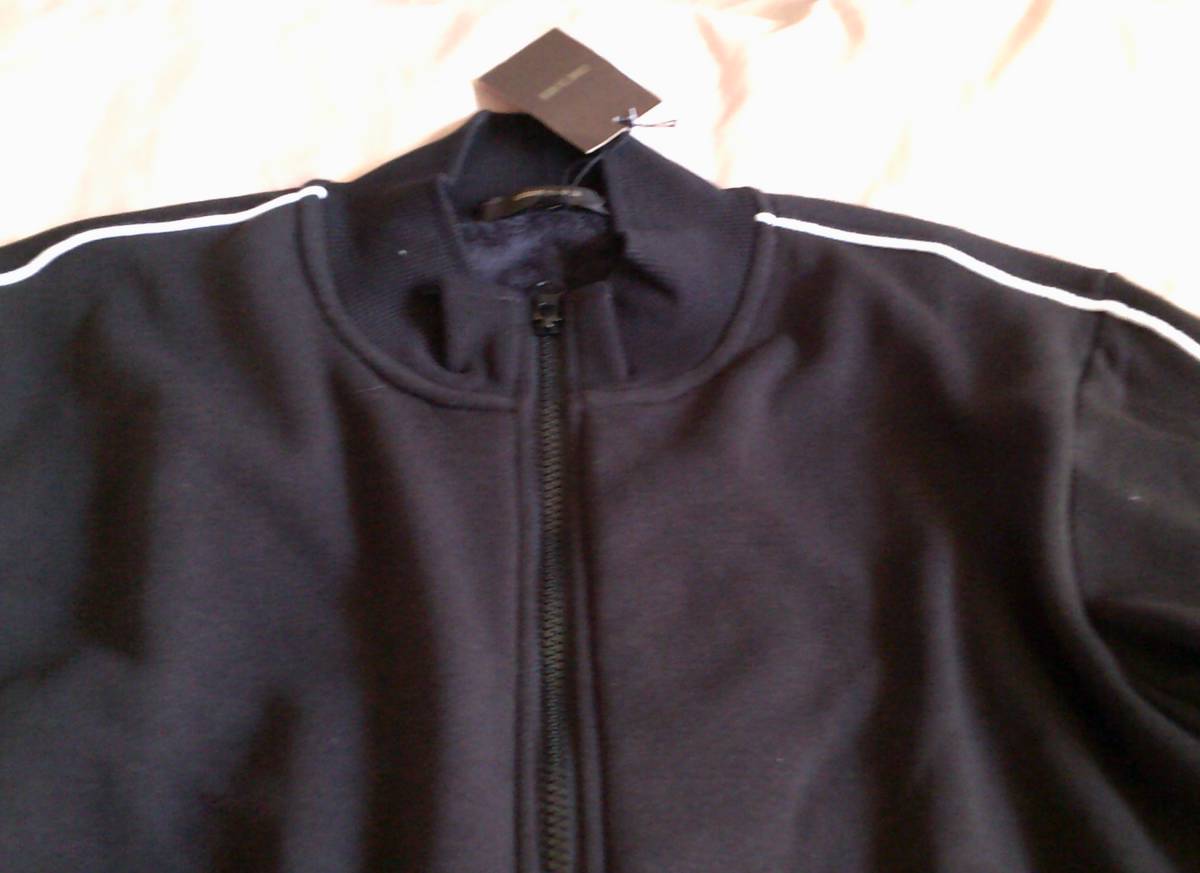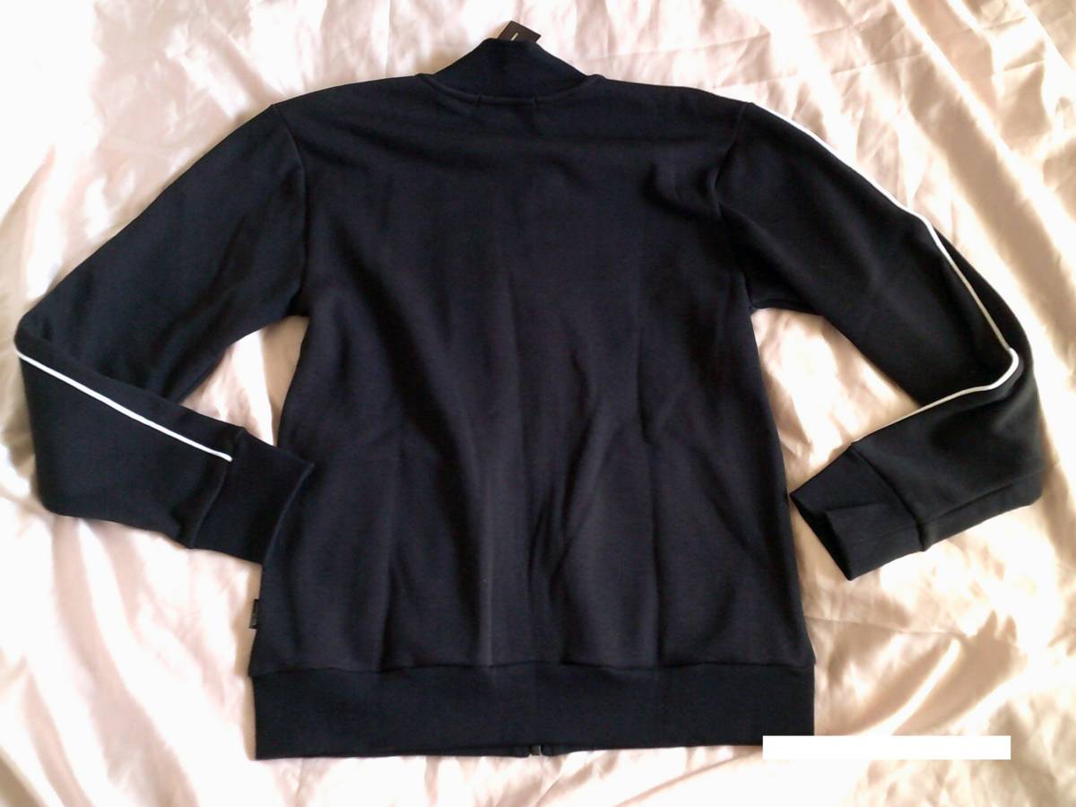 新品タグ付きです。 素材 本体:ポリエステル60%, 綿35%, ポリウレタン5%, リブ:綿97%, ポリウレタン3% サイズ M チェスト 88~96cm カラー ブラック ホワイト 実寸 着丈68 身巾51 肩幅46 袖丈62cm 生地はそんなに厚手ではありませんが、裏起毛素材なので、あたたかいジャージジャケットです。 | |||