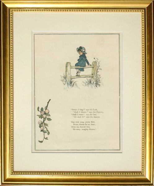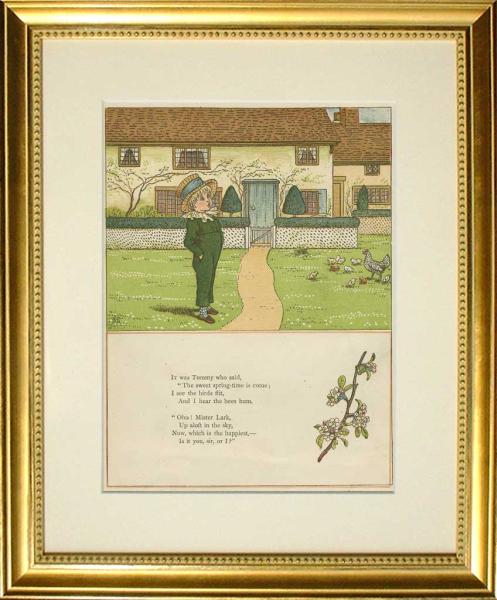 題名=【 UNDER THE WINDOW 】/製作=【 1879年 】/サイン=【 K.G・版上サイン 】/出版元=【 GEORGE ROUTLEDGE AND SONS 】/版元=【 EDMUND EVANS 】/額装=【 差し替えて鑑賞出来る様に両面ダブルマット加工した額装一点の出品です。 】/新品オーダー高級金箔額装サイズ=【 380X330 】/状態=大変良好【 ミントコンディション 】 送料=無料【ヤフネコ宅急便】