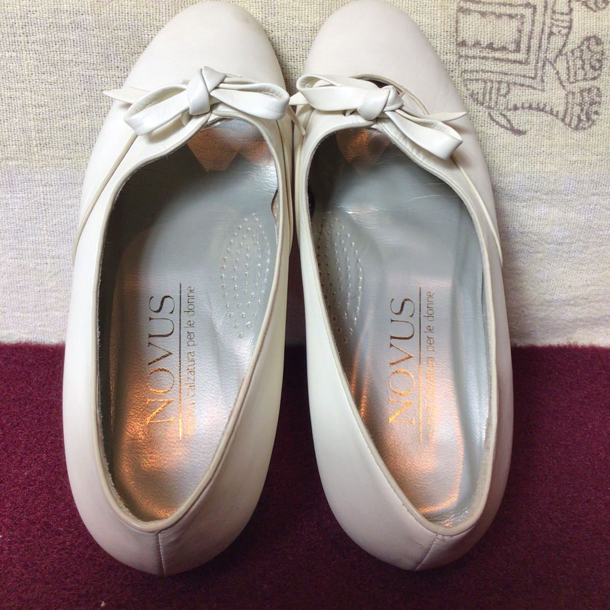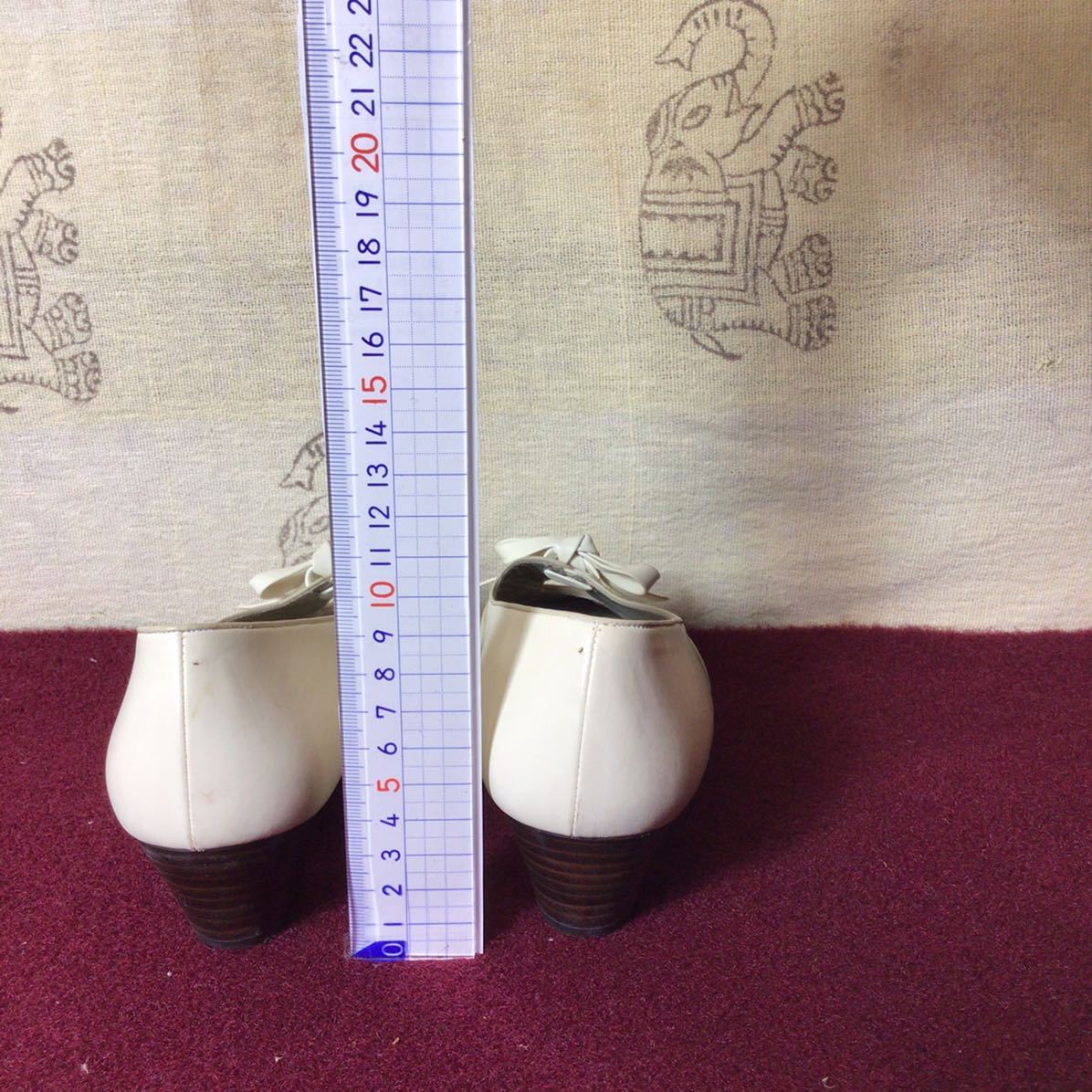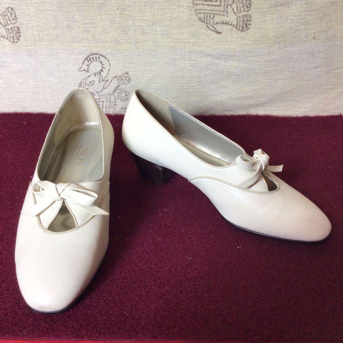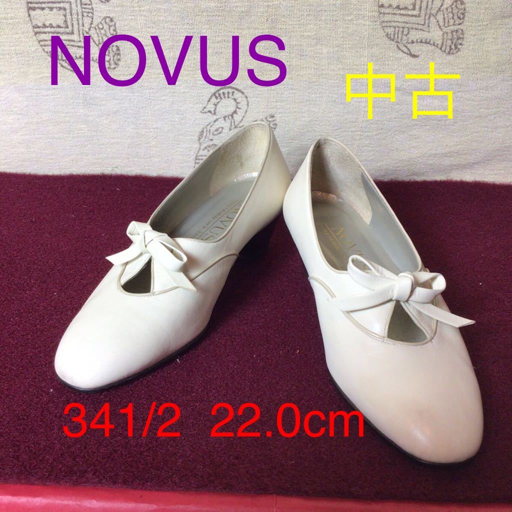【売り切り!送料無料!】A-94 NOVUS!34 1/2!22.0cm!パンプス!ホワイト系!ベージュ系!リボン!中古!