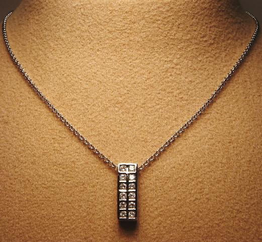 直線的ラインとシンプルなデザインがシャープ&スポーティで、輝きアップのオシャレダイヤペンダント。