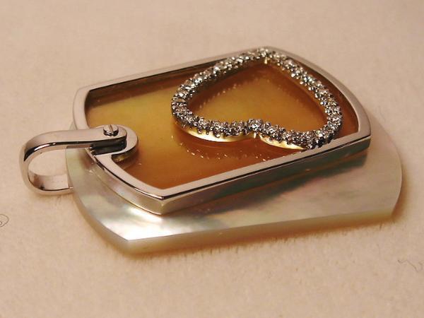 PE618:K18WG 黄蝶貝 白蝶貝 ダイヤ ペンダント