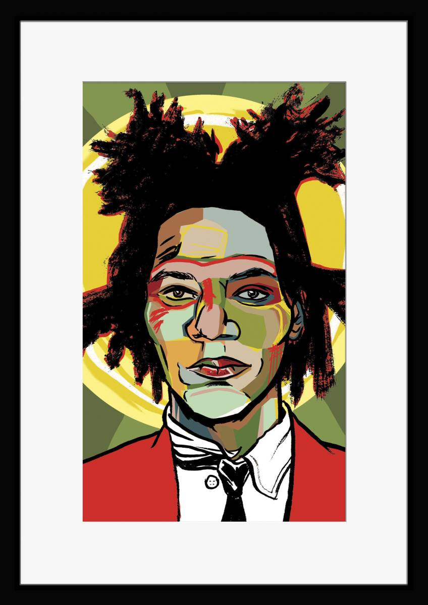 FB05W-ジャン=ミシェル・バスキア Basquiat 白マット frame フレーム有 枠有 マット有 インテリア A4 置物 ポスター 模写
