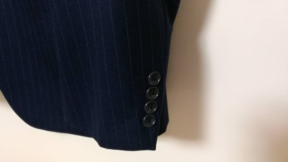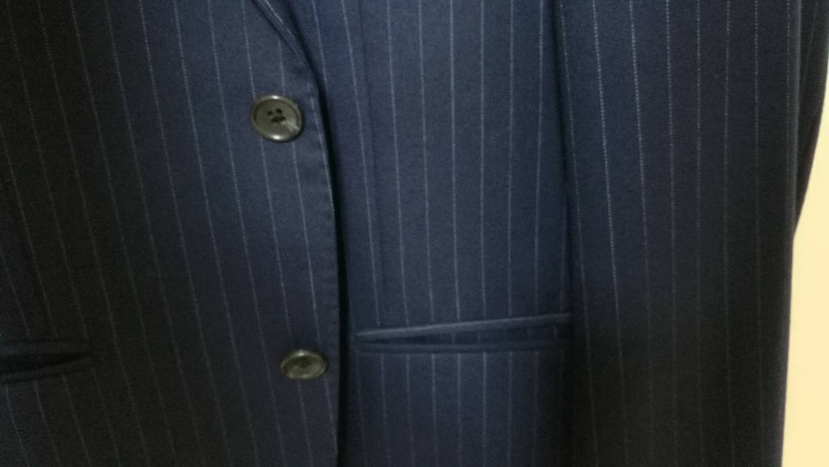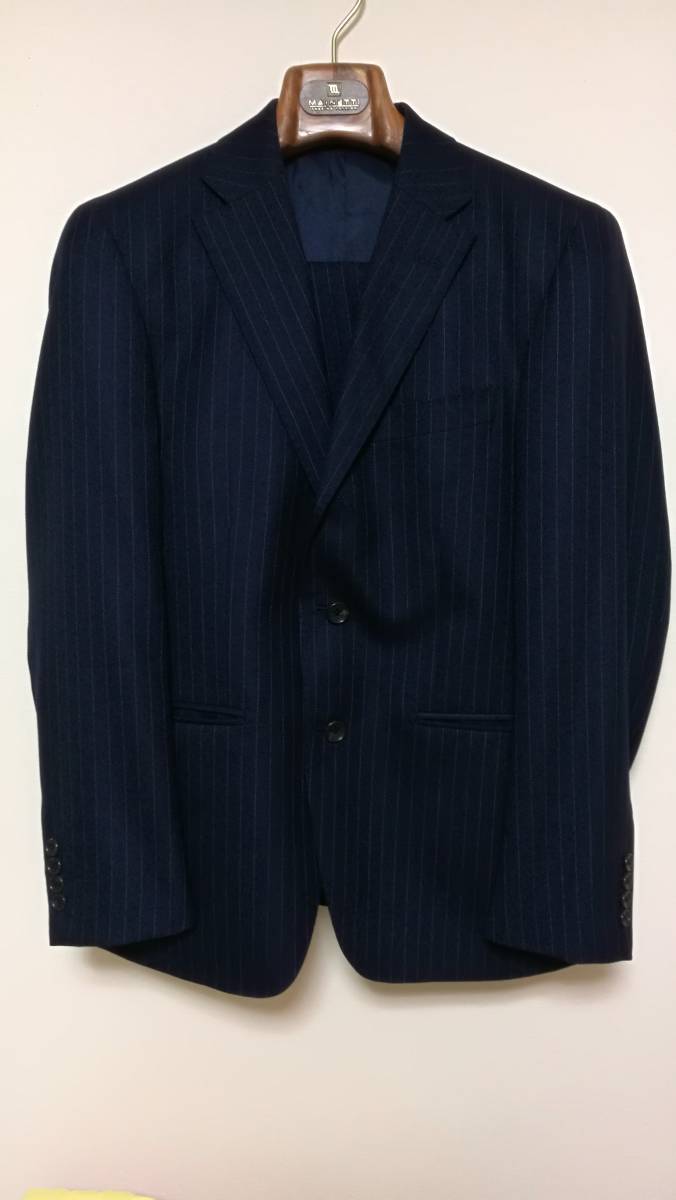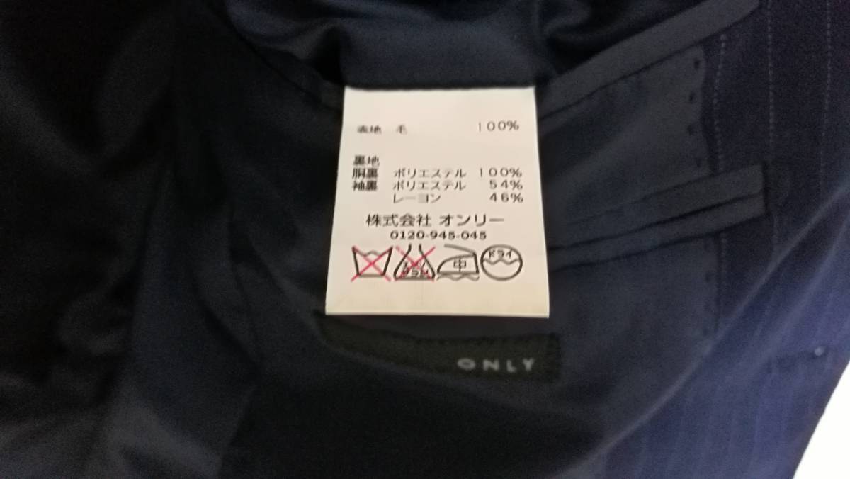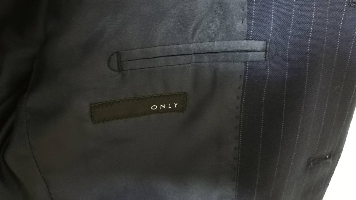 ONLY ストライプ スーツ オンリー 165AB ウール 100% 紺 x 白 ノータック ビジネス ネイビー ホワイト