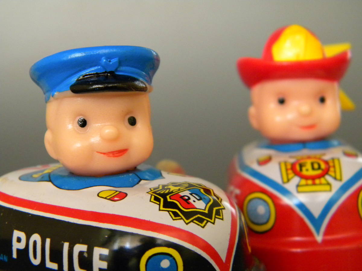 ●当時物 ★★BABY CAR ベビーカー消防車&ポリス !! 作動良好 走行方向転換 ミニソフビ YONE 日本製「定形外/LP可★★未使用 デッドストック