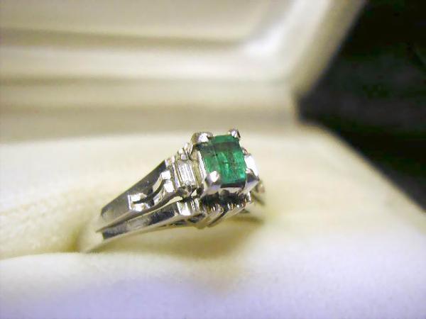 綺麗なエメラルド、光るメレダイヤが両脇に!