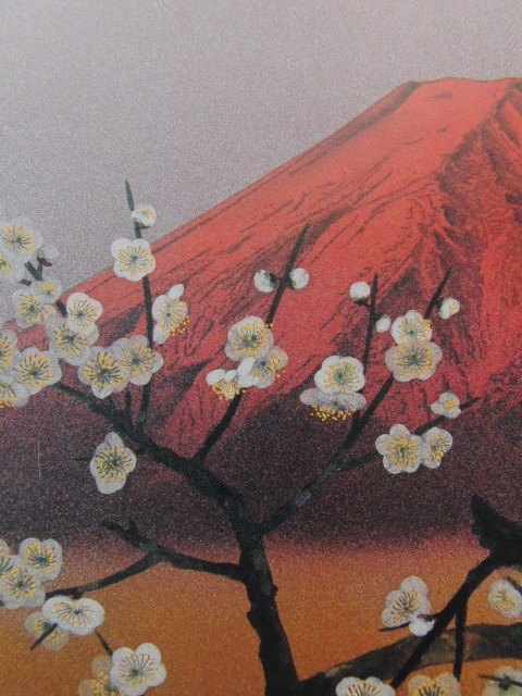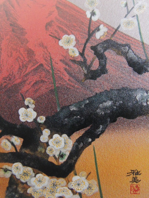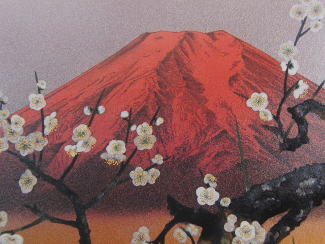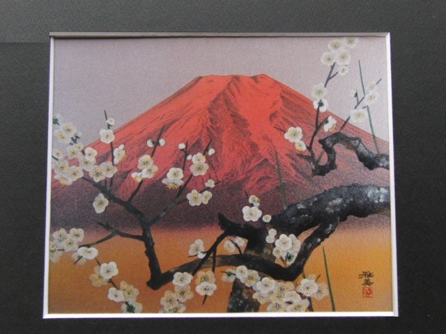 小谷津雅美、【新春赤富士】、希少な額装用画集より、新品額装付、状態良好、送料込み、日本人画家