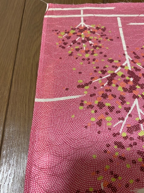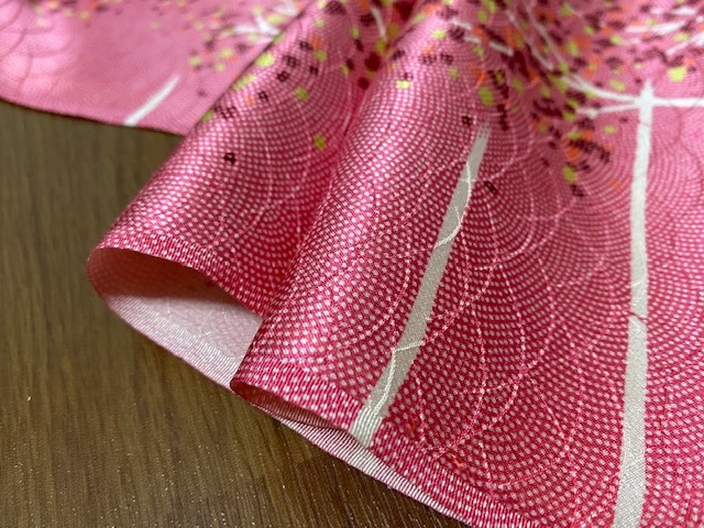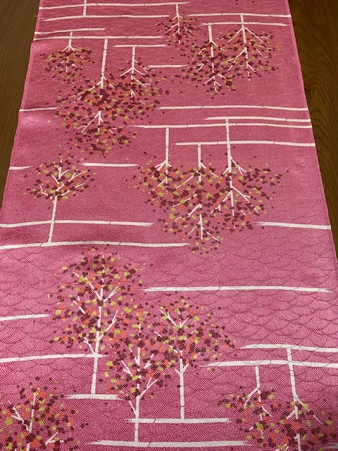 【値下げ】★和布★古布 正絹綸子縮緬 小紋着尺 ハギレ(ピンク 木の柄)118㎝ 和柄 着物