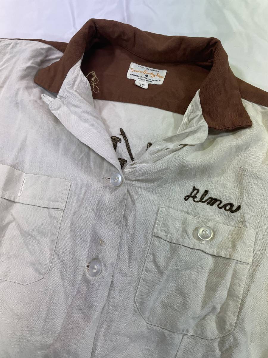 | アクセス頂きありがとうございます。 こちらはアメリカ買付古着 半袖ボーリングシャツです。 全体的に使用感はありますが 状態は良いと思います。 サイズ 32 着丈 59cm 身幅 45.5cm 肩幅 33.5cm 袖丈 16cm その他、多数出品しております。 こちらもご覧下さい |