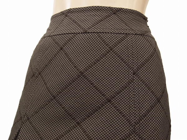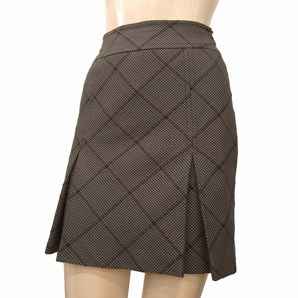 Ut★インディヴィ*INDIVI★ブラウン系★ウール100%★千鳥格子*チェック柄★部分プリーツ★美女スカート★希少サイズ03号