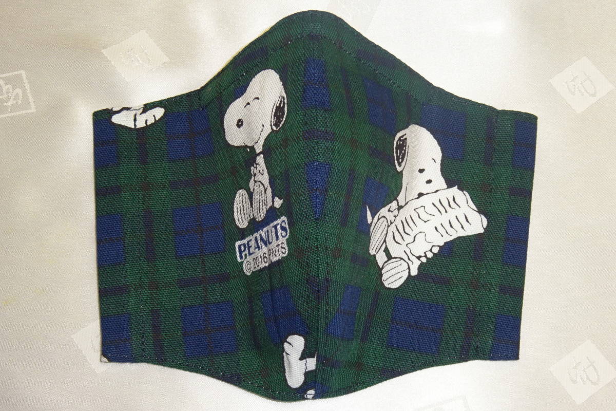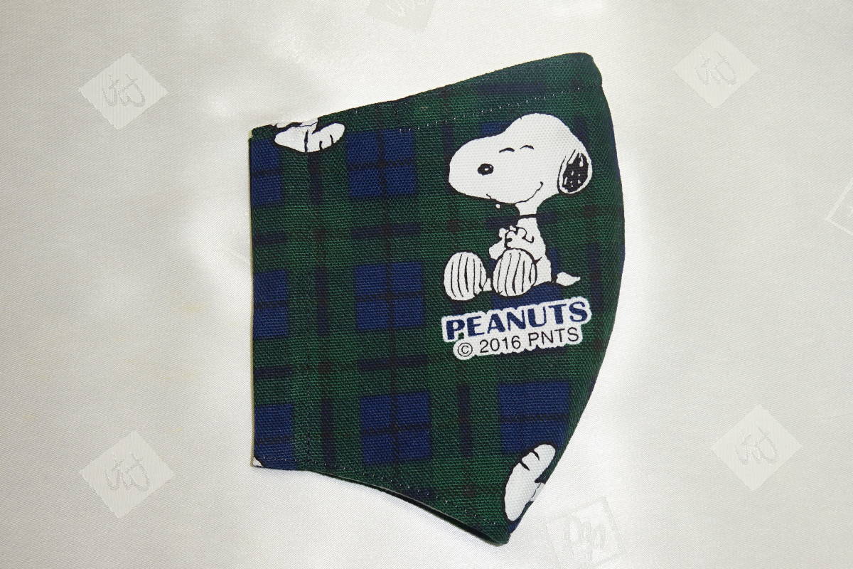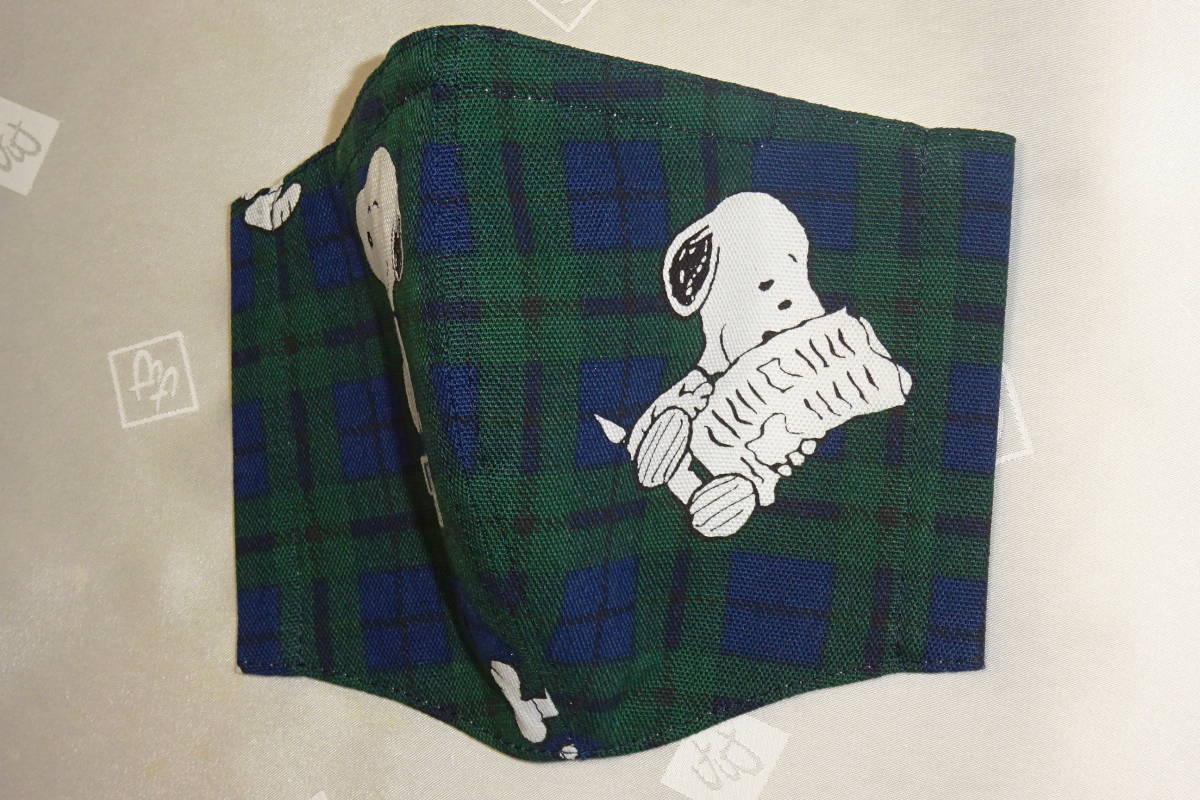 Sサイズ スヌーピー タータンチェック グリーン ネイビー キャラクター ノーズワイヤー入り インナーマスク ハンドメイド