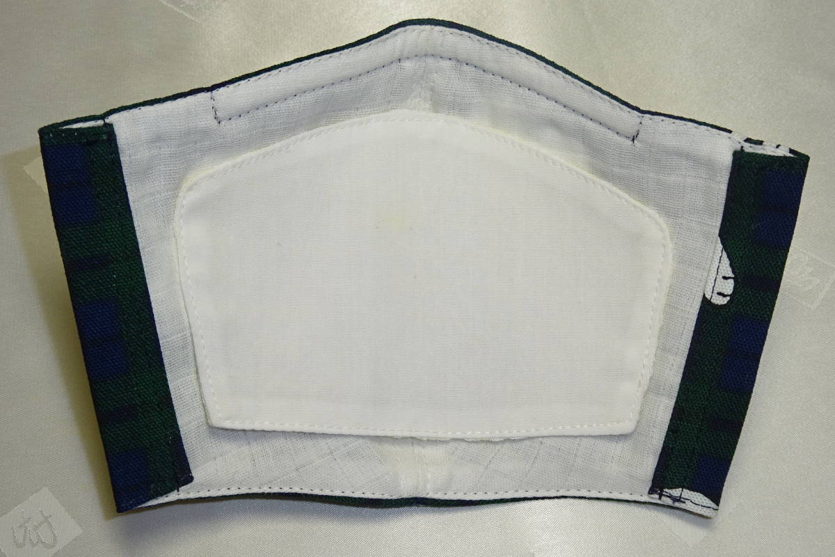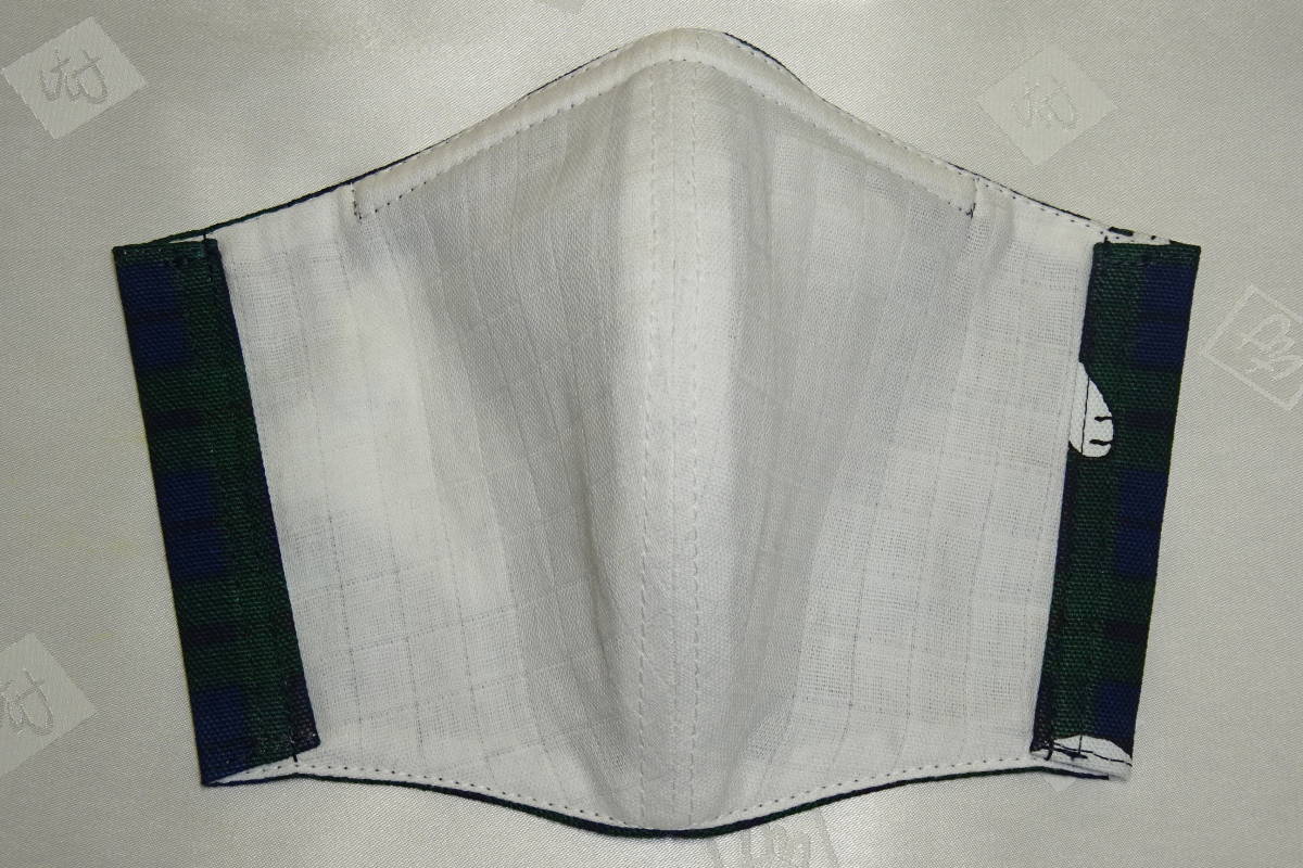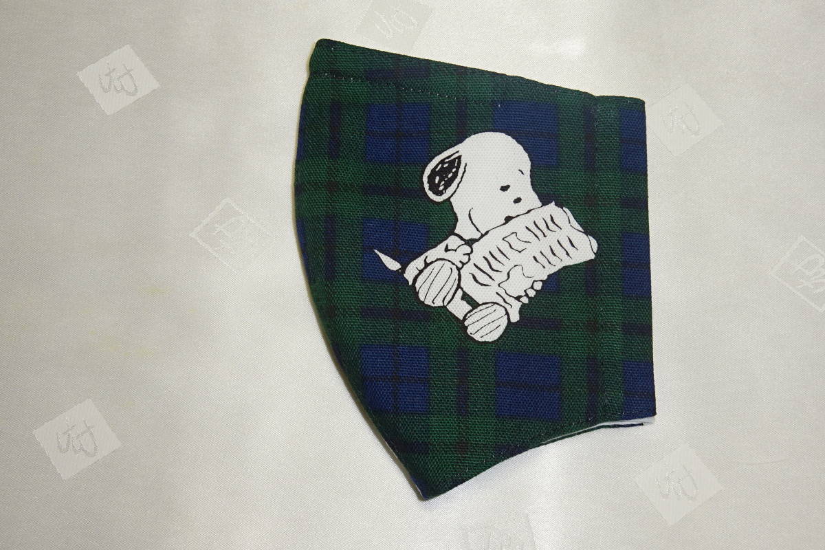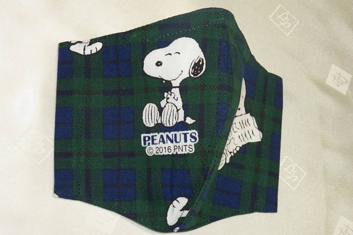 Sサイズ スヌーピー タータンチェック グリーン ネイビー キャラクター ノーズワイヤー入り インナーマスク ハンドメイド