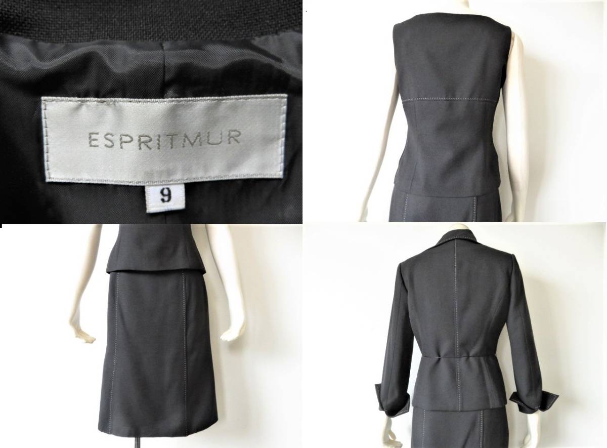 ■上質美品【ESPRITMUR】エスプリミュール高級3点セットブラックスーツ9号M ママスーツ セレモニースーツ s451
