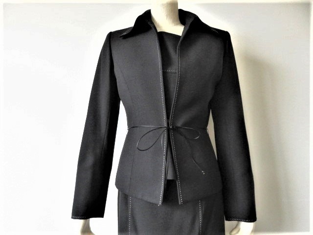 【ESPRITMUR】エスプリミュールの高級3点セットブラックスーツ、お色はブラック×ホワイトステッチです。