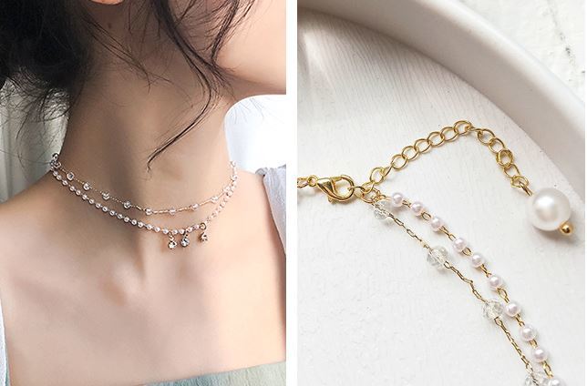 ネックレス 2連 パール ラインストーン クリア アクセサリー a2335 | |