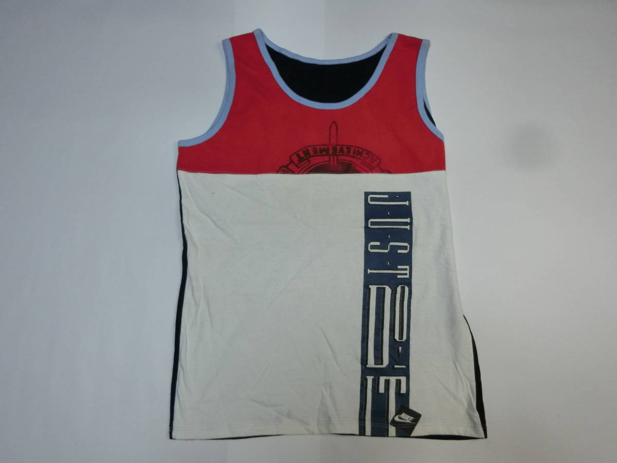 米国の業者に古着Tシャツをタンクトップにリメイクしてもらった商品です。他に同じ物がない正に1点モノです。首回りと脇にリブが付き、裾もロックミシンがかけられてます。古着Tシャツを使用してる性質上小さい染み汚れ等がある場合があります。