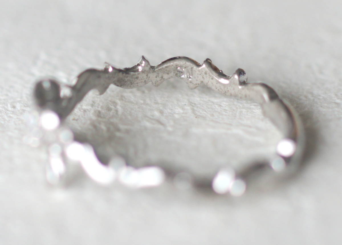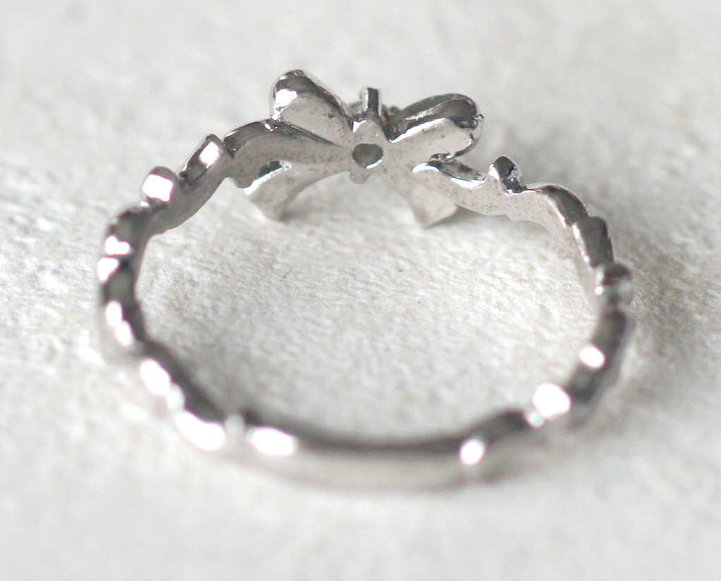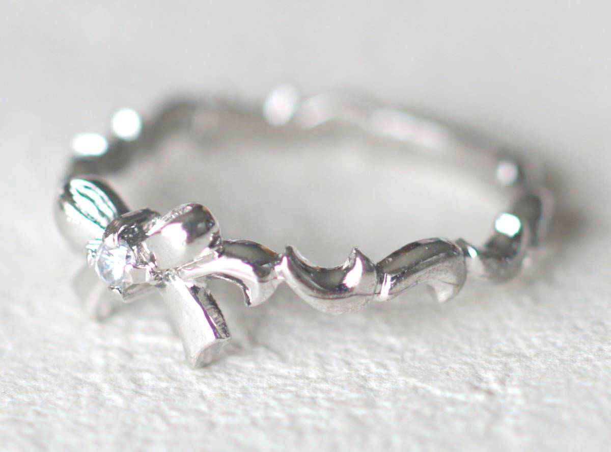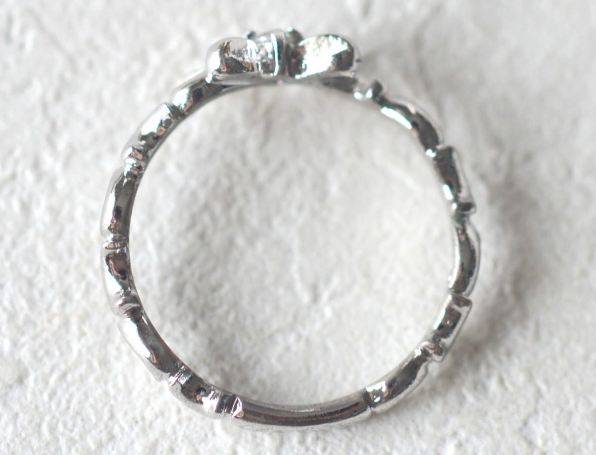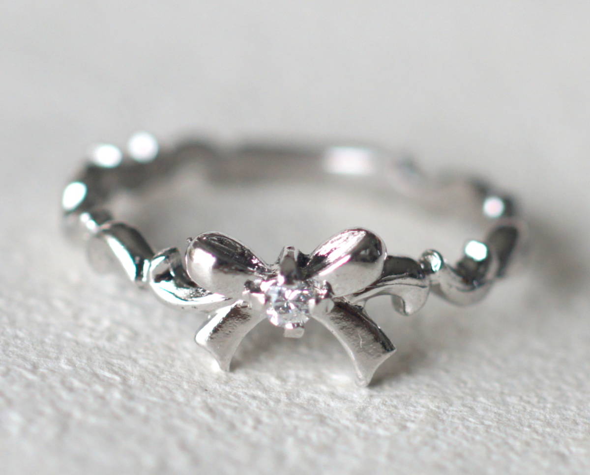 シルバー製 一粒ジルコニア付きリボンのリング 約11号
