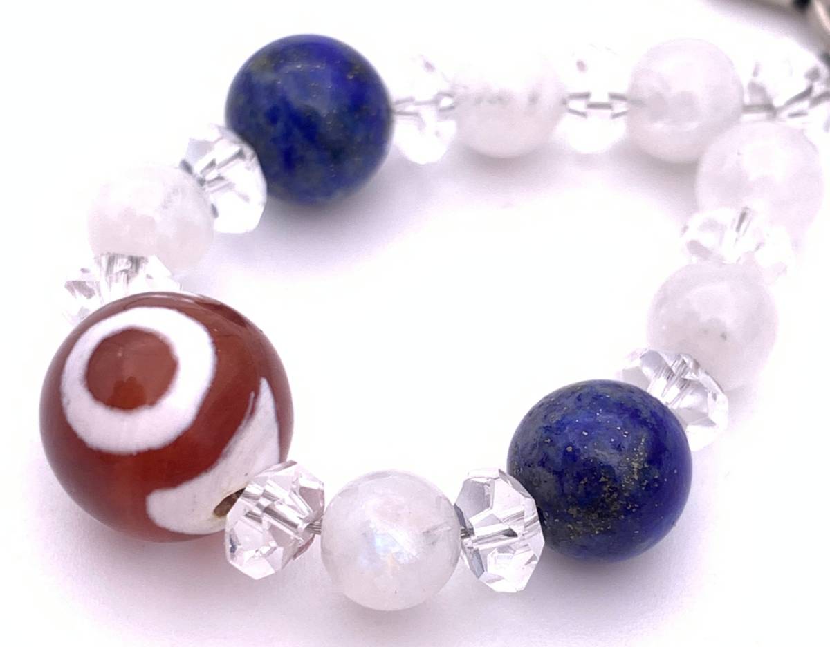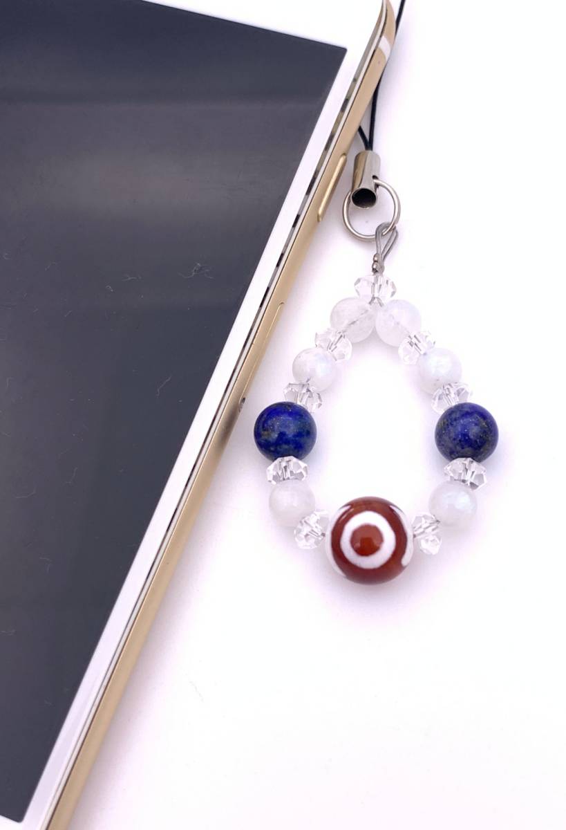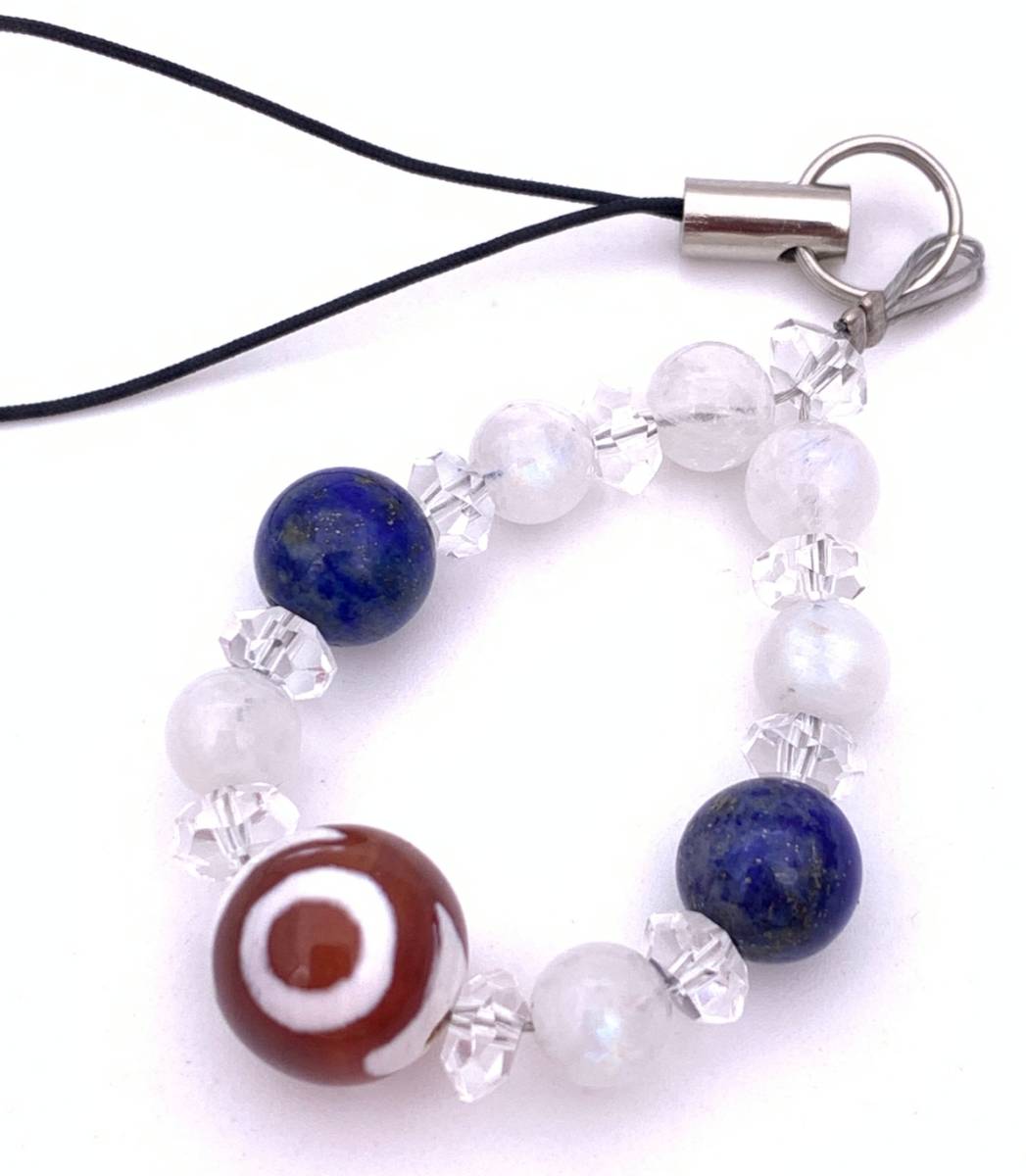 天然石三眼天珠&ラピスラズリ&ムーンストーンのストラップ