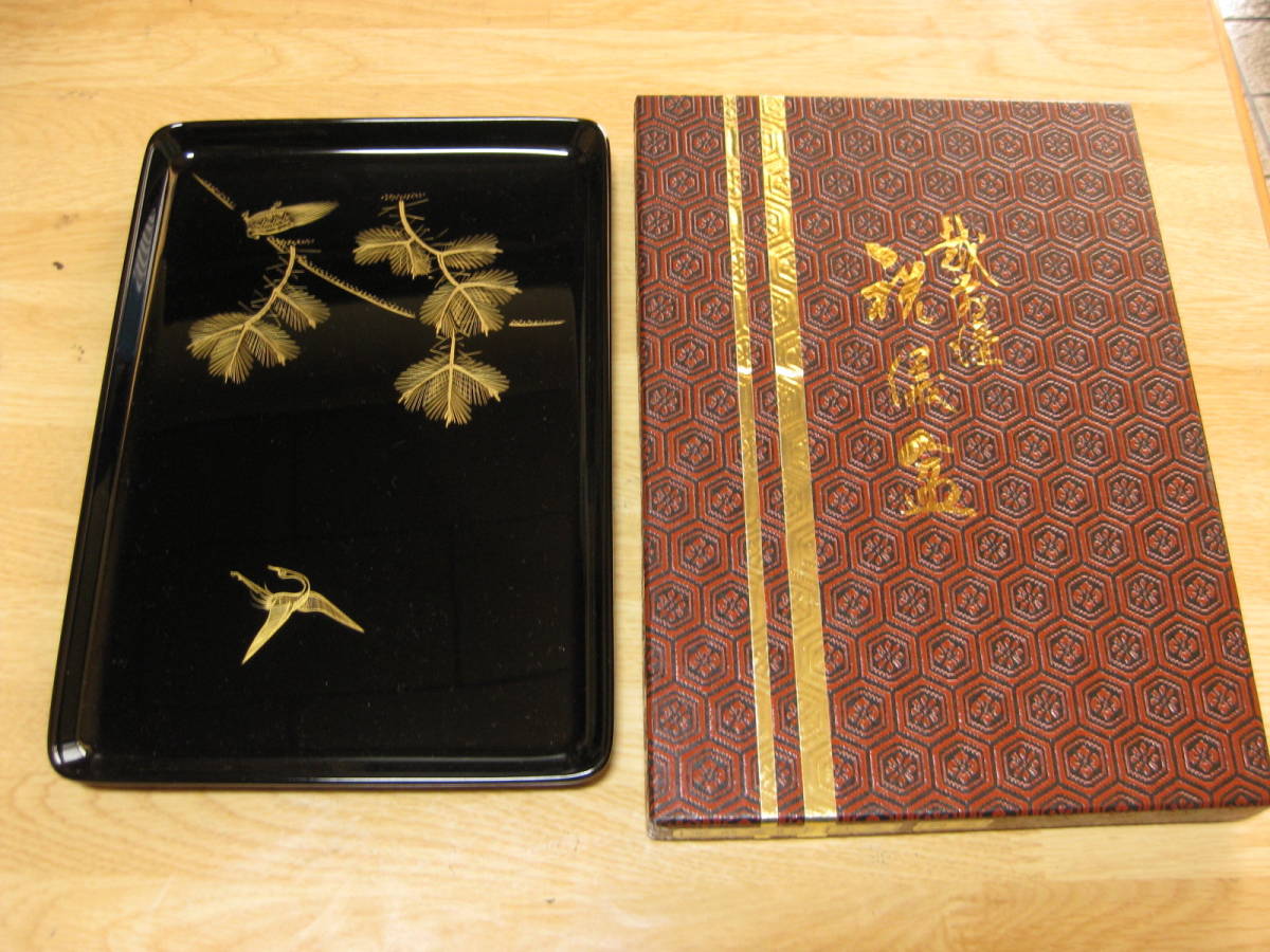 天然木使用、本漆の手塗り。 おめでたい鶴亀模様の、ゴージャズな沈金仕上げ。 どのような場所でも恥ずかしくない最高級品です。12,000円以上の価値は必ずあります。 新品未使用品。。