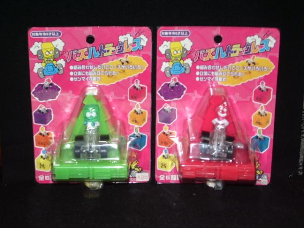 ●未開封保管品●これは、凄い!ぜんまいパワーで爆走する緑の四角君とピンクの菱形ちゃんです。(未開封ですのでお菓子は食べないで下さいね。)他にもオレンジの丸坊と紫の三角君のセット①を出品していますので見てやって下さい。(・・・・・いろんな形のコースが作れますので、レースさせて見るのも面白いかも、です。)・・・・・・・・・>