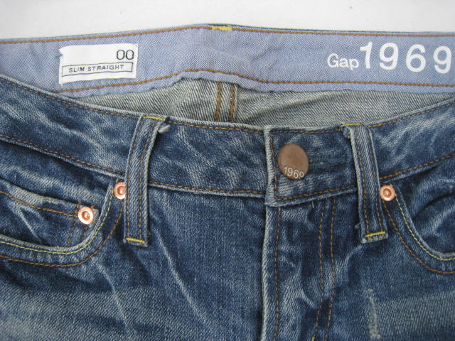 Gap ギャップ SLIM STRAIGHT ダメージ加工デニム パンツ ブルー サイズ00