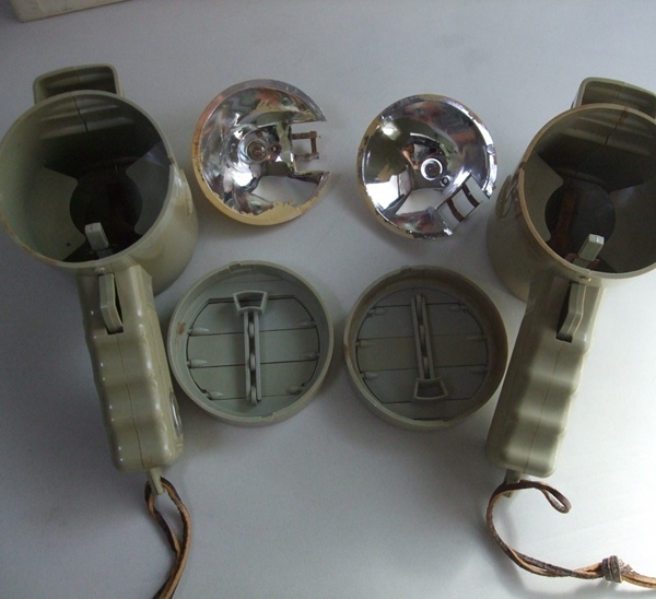 本体によごれ、小傷、電池ボックス金具、電球部分に腐食が目立ちます。