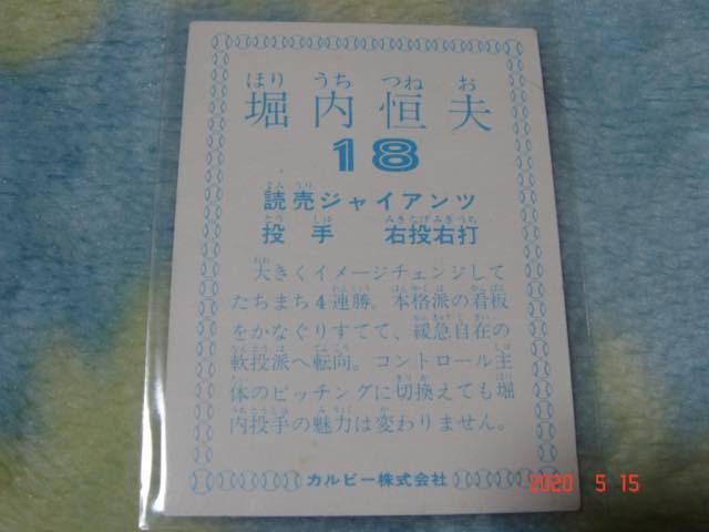 *カルビー '78年 プロ野球カード (堀内/巨人)  美品  ①  *