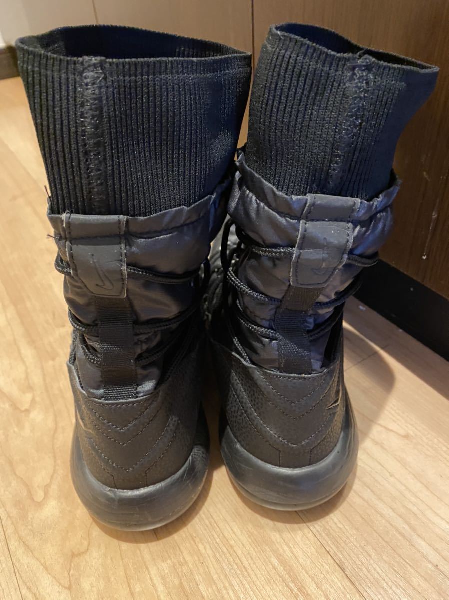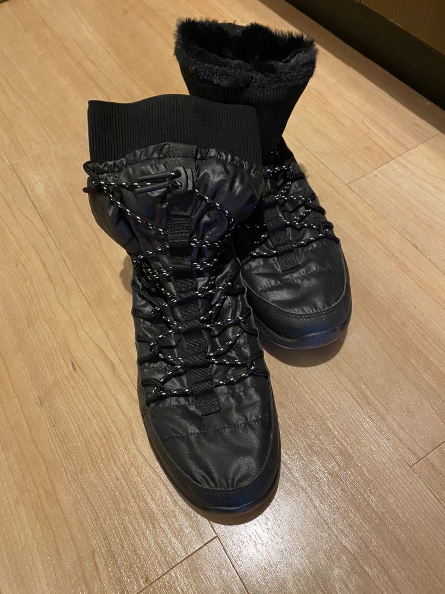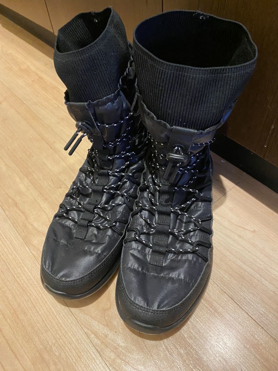 ナイキのウィメンズのローシワンです。ニューヨークのショップで5年前に購入しました。日本では取り扱いないアイテムです。トレッキングブーツのようなスニーカーです。内は起毛してありますのでとても温かいです。画像の様に折って着用できます。