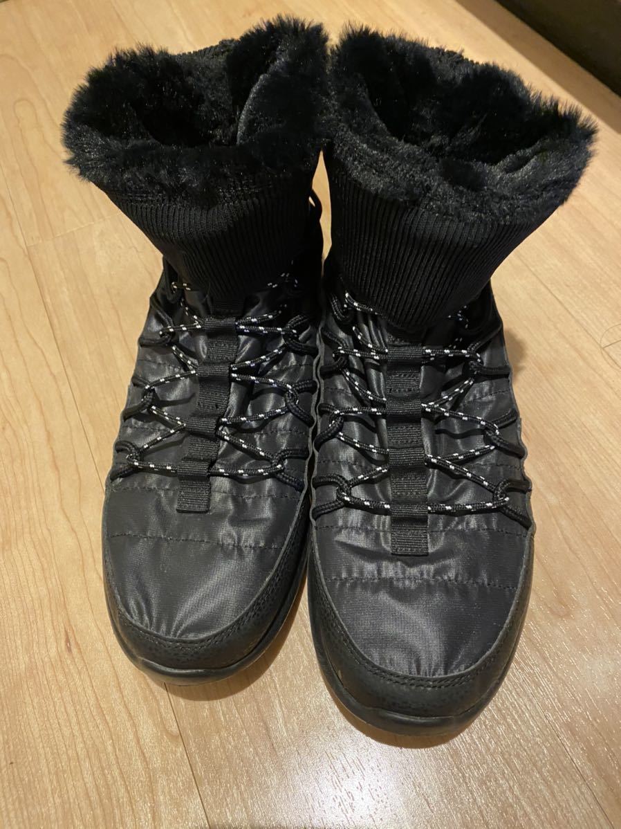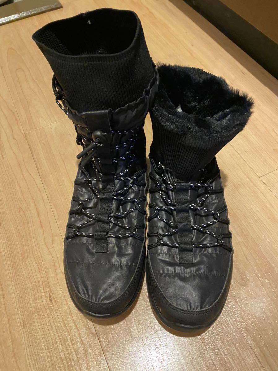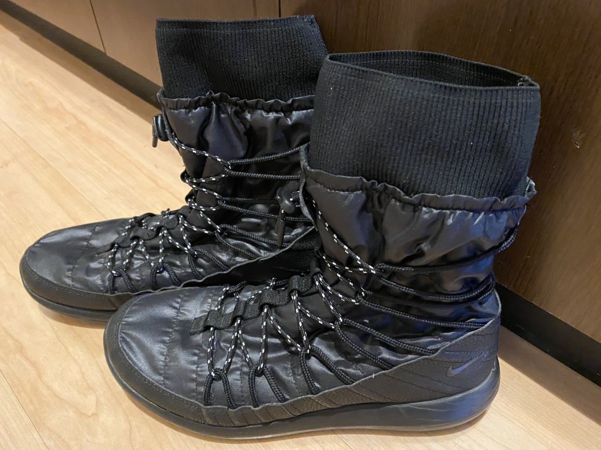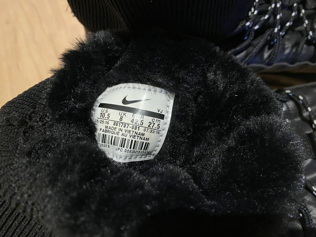 ナイキのウィメンズのローシワンです。ニューヨークのショップで5年前に購入しました。日本では取り扱いないアイテムです。トレッキングブーツのようなスニーカーです。内は起毛してありますのでとても温かいです。画像の様に折って着用できます。