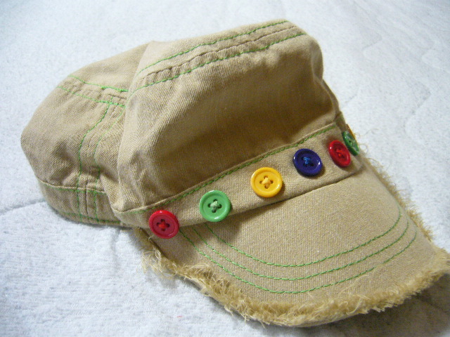 カラフルボタン ベージュカラー 帽子 ぼうし キャップ ワーカーキャップ 子供用 サイズ54㎝ コットン70%アサ30% 涼しい 未使用