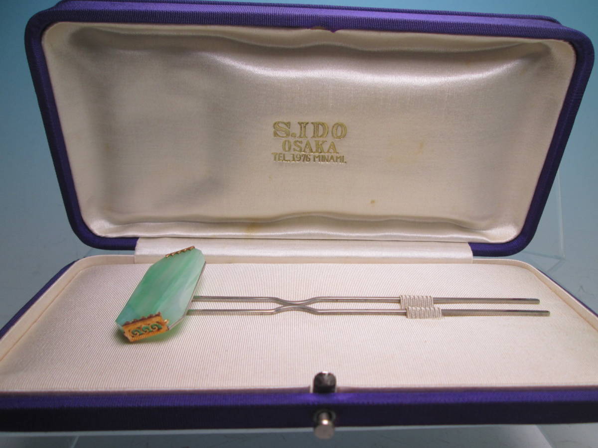 【江月】アンティーク・本翡翠 金彫金の素敵なかんざし 14,59g 共ケース付