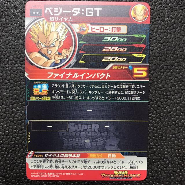 UM1弾レア/ ベジータ:GT(超サイヤ人)/ UM1-44/ 技:ファイナルインパクト/ スーパードラゴンボールヒーローズ/ レアリティ:☆☆/ BANDAI