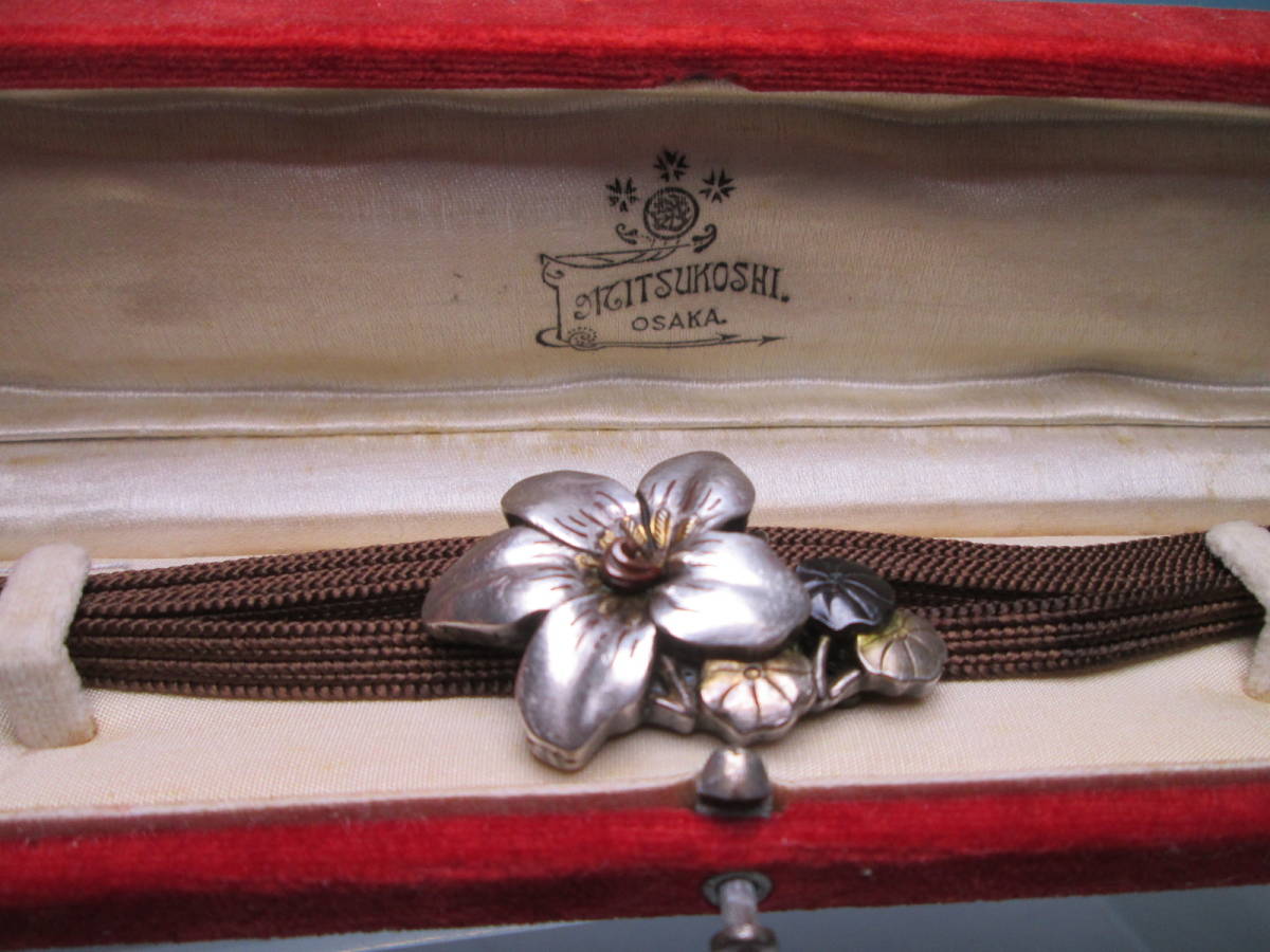 【江月】アンティーク・三越 光弘造 金工 花帯留め 20g 共ケース