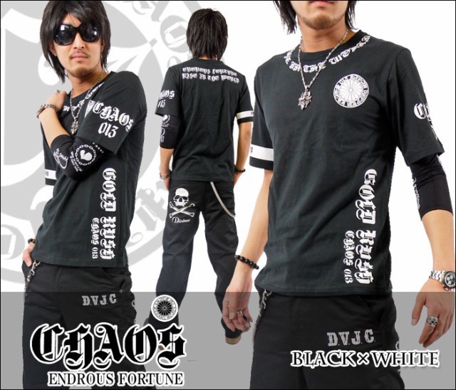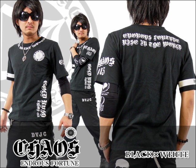 【閉店セール】【CHAOS 013】【菊紋/首元/腕/サイド/バック/英字プリント】【CH-2002】新品黒白L