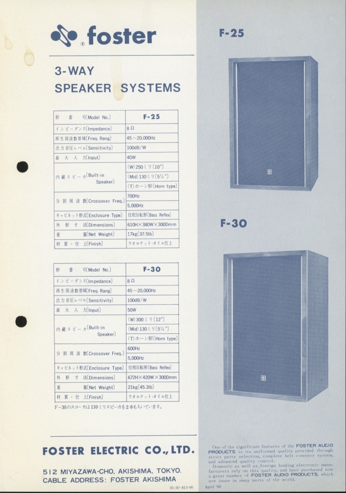 Fostex F-25/F-30のカタログ フォステクス 管2091