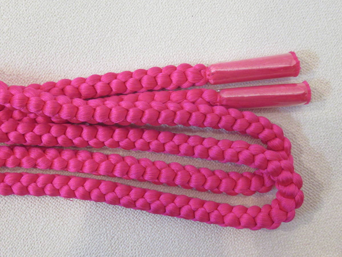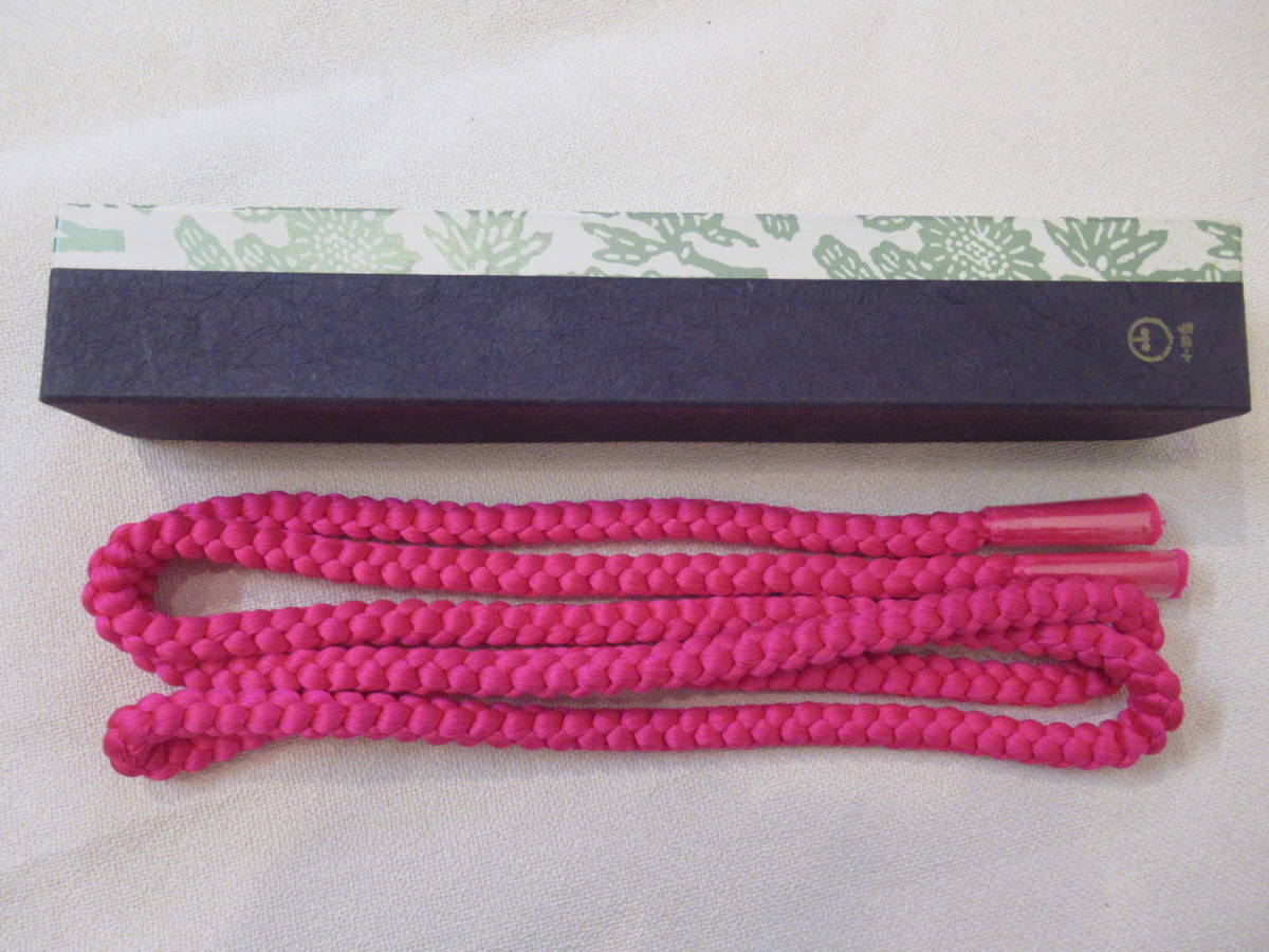 小田急百貨店の丸組み帯止めです。絹で濃い桃色です。未使用ですが、時間の経過があります。サイズは、直径1センチ、中さ160センチです。