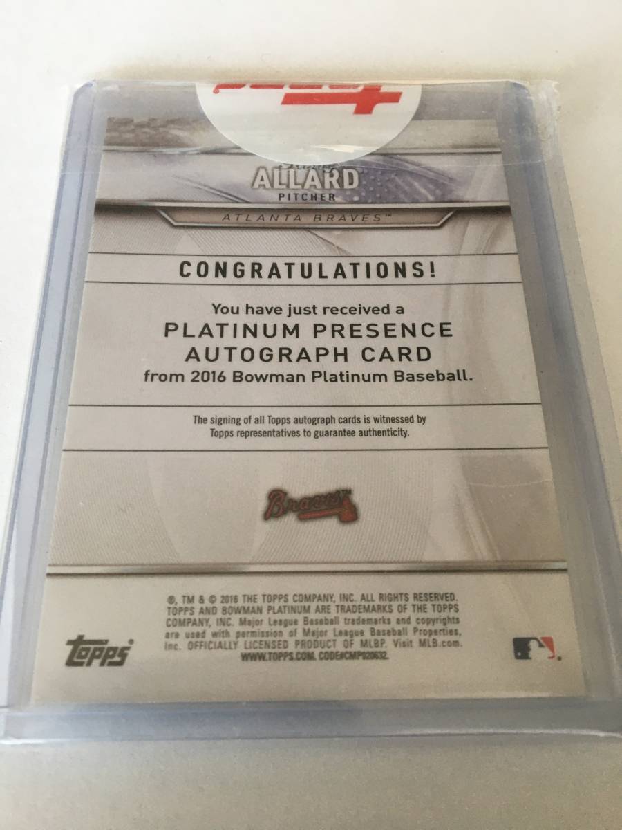 【現Guardians/Kolby Allard/今季33試合出場】2016 Bowman Platinum Auto #/75