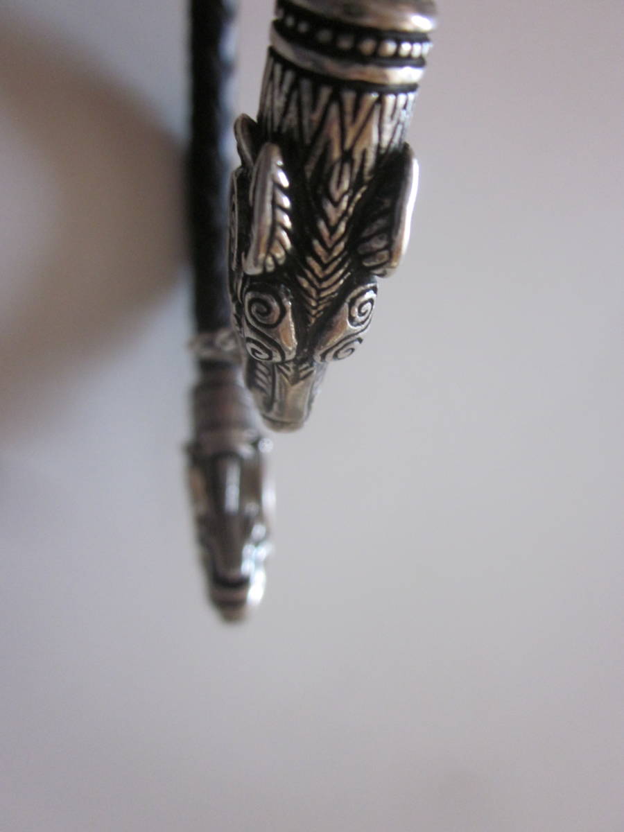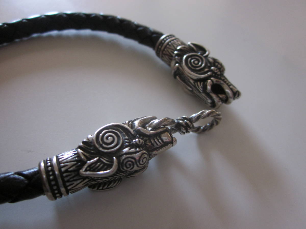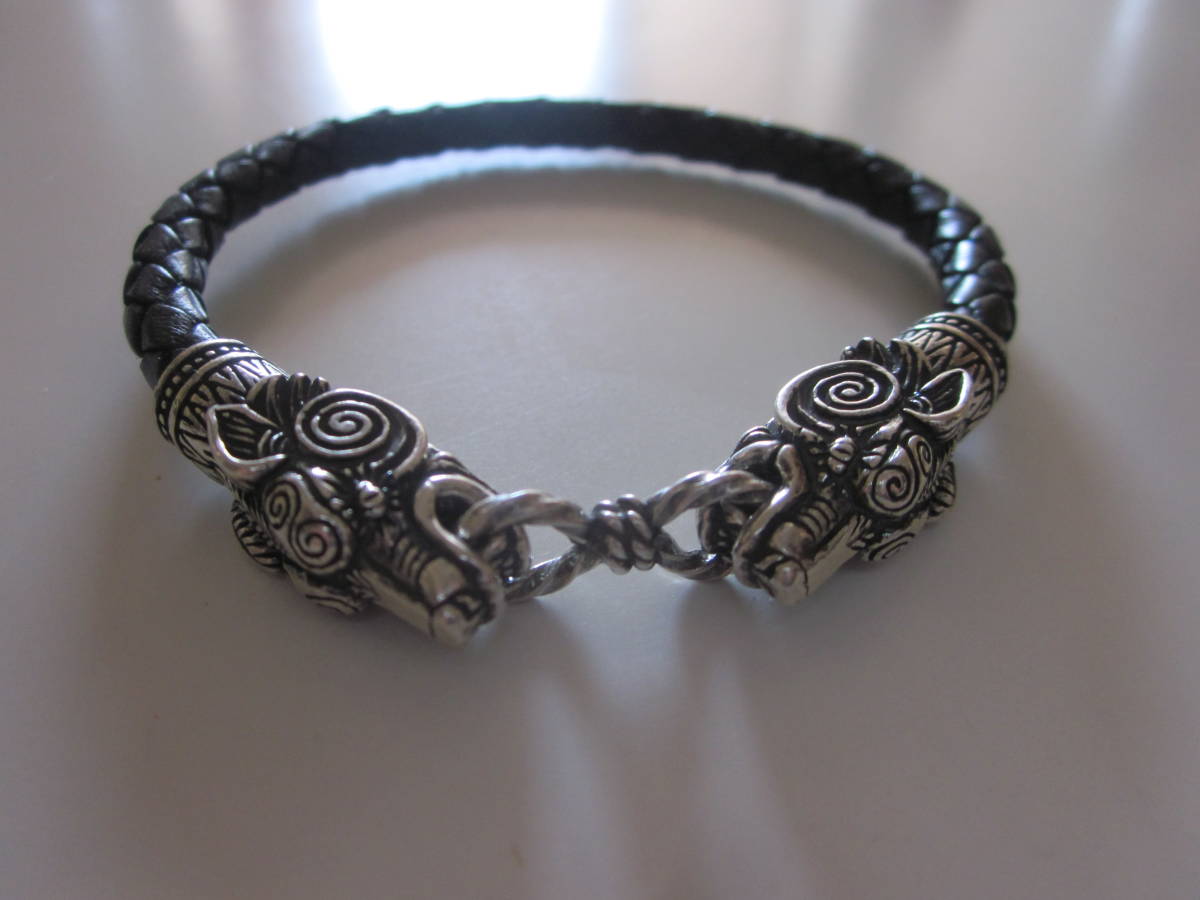 ■ご注意下さい■入札される前に、自己紹介をご覧くださいませ。◆◆◆発送についてご注意下さい◆◆◆ Etsyで購入。Fenrir Viking Wolf。使用しました。経年経過もあり、変色、黒ずみ、小傷、汚れ、使用感、経年経過感あります。あらかじめご了承の上、入札のご検討をよろしくお願い申しあげます。 新品のようにきれいなものをお求めの方、完璧なモノ・コトをお求めの方のご入札はお控え下さいませ。使用品ですので、使用感はたくさんあります。使用品、古い物、デザイン、商品を気に入ってお買い物を楽しんで下さる方のご入札をお待ちしております。 重さ・・・約19.5g弱(※家庭用計測器ですので、専門の計測器とは違い、他の機種と誤差が出ると思いますので多少の目減りにはご容赦下さいませ。) 長さ・・・先端から先端測定して約19.5cm(※採寸が難しい商品です。測定位置により採寸誤差がありますので間違いなどについてはご容赦下さいませ。) 刻印・・・素材刻印はありません。シルバー部分の素材は不明です。 |