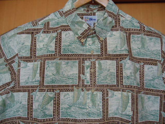 ハワイにて、古着として、購入しました。レインスプーナー社製。プルオーバー。ロゴシェルボタン。コットン60%・ポリエステル40%混合素材です。カラーは、クリーム・茶・こげ茶色地に、ヨット風景・他柄です。クリーニング済み。ハワイ製。なお、当商品のサイズ表示は、全てUSAサイズです。サイズ表示は、XXLですが、平置き実寸を重視して下さい。なお、少々誤差は、ご了承下さい。肩幅約53センチ・身幅(脇の下)約68センチ・丈約83センチです。目立ったダメージありませんが、USED物なので、古着に、ご理解のある方・24時間以内に、お手続き入力後、期限内にかんたん決済、出来る方のみ、ご入札をお願い致します。番号は、こちらの整理番号です。この商品は、1点物です。 ※※発送方法・送料は、レターパックライト郵便(追跡可能・補償無し)ですと、430円又は、レターパックプラス郵便(追跡可能・手渡し配達・補償無し)ですと、600円又は、ゆうパック送料着払い便(持ち込み割引有り・追跡可能・手渡し配達・補償有り・かんたん決済時は、送料0円ですが、送料のみ到着時支払い)です。※※ ☆★★★★★☆送料は、変わりますが、何点でも、同梱包可能です。数点落札されましたら、まとめて取引を、選択お願いします。☆★★★★★☆