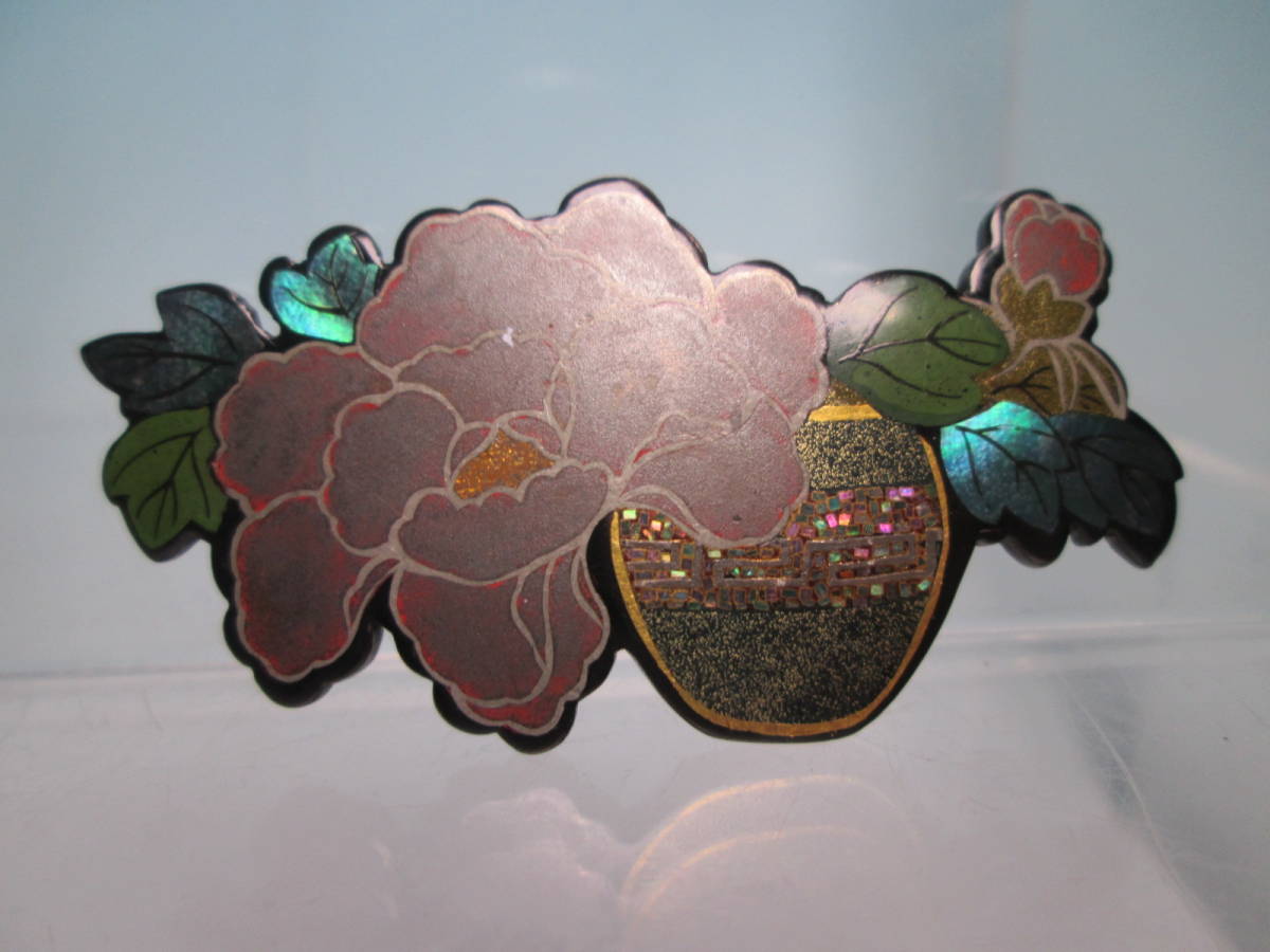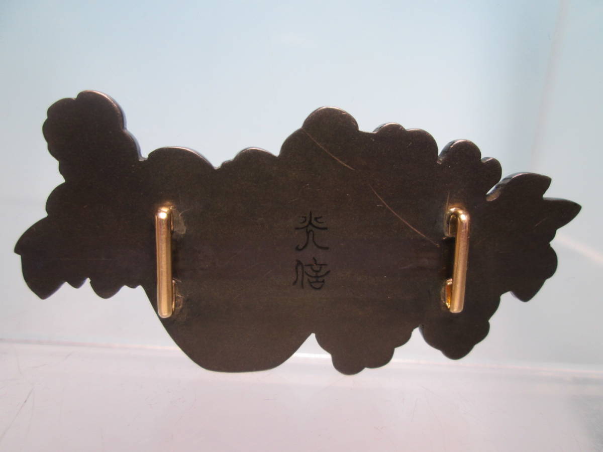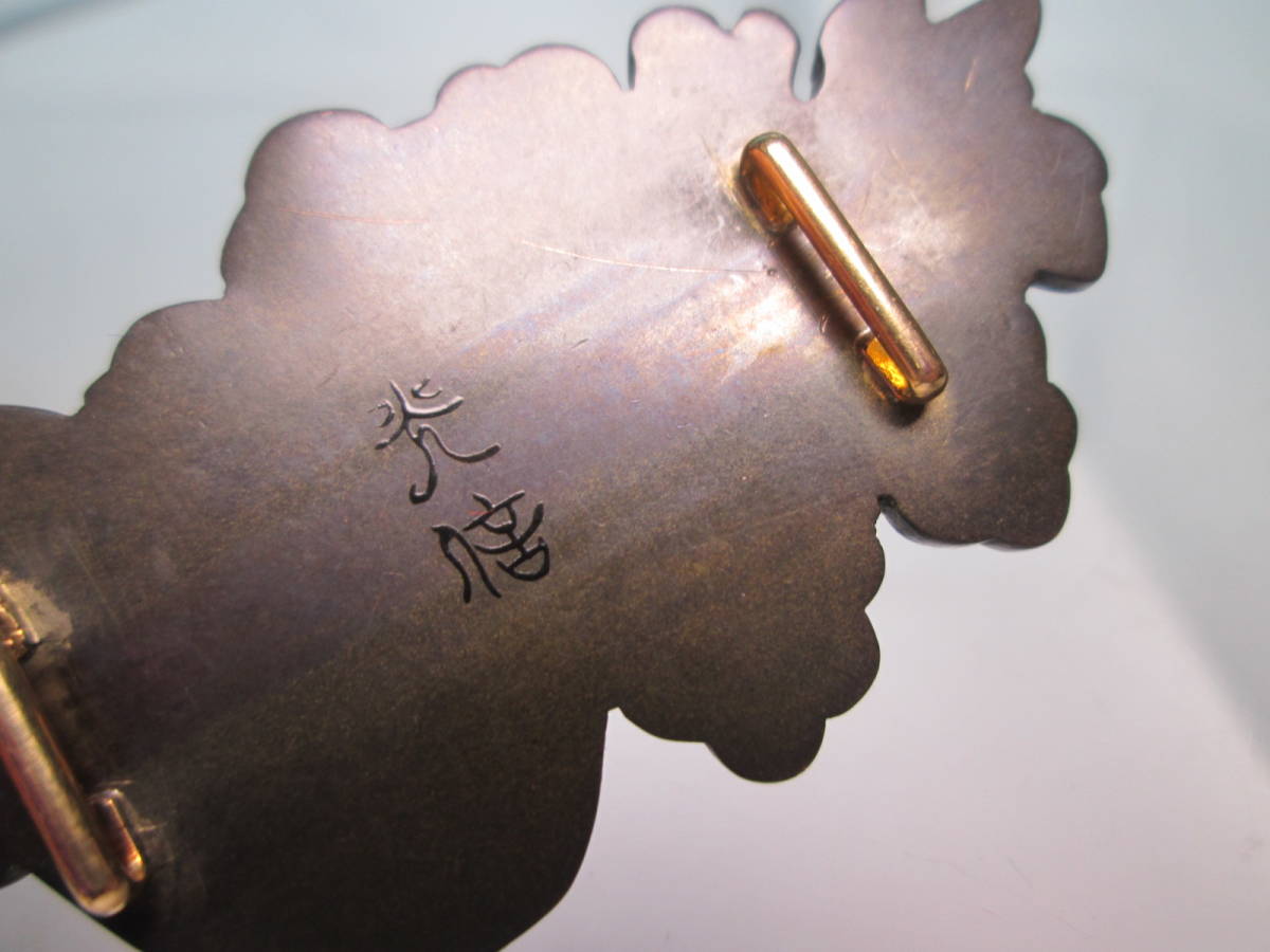【江月】アンティーク・光倍造 金工 金銀象嵌 牡丹と壷の帯留め 16,88g