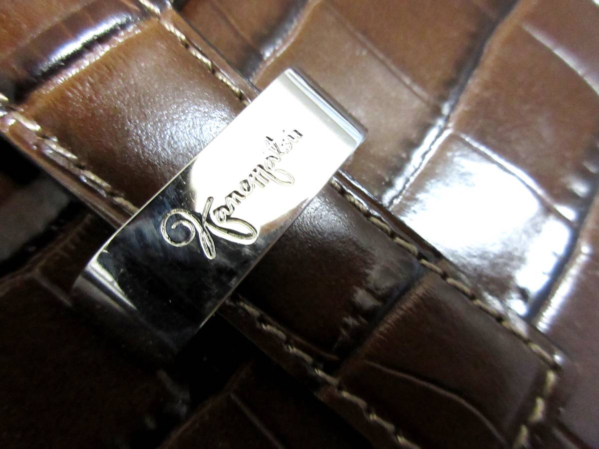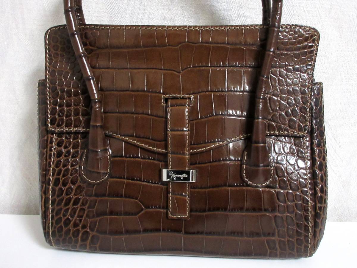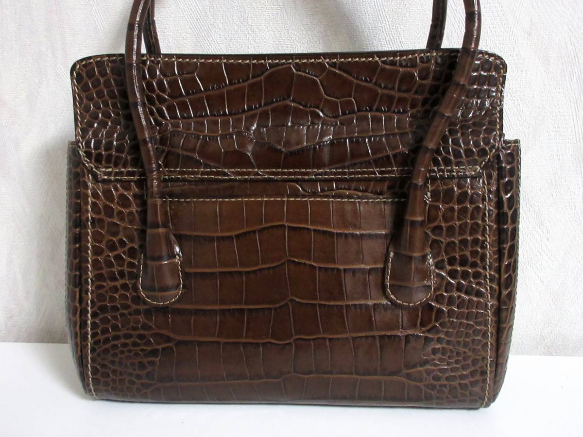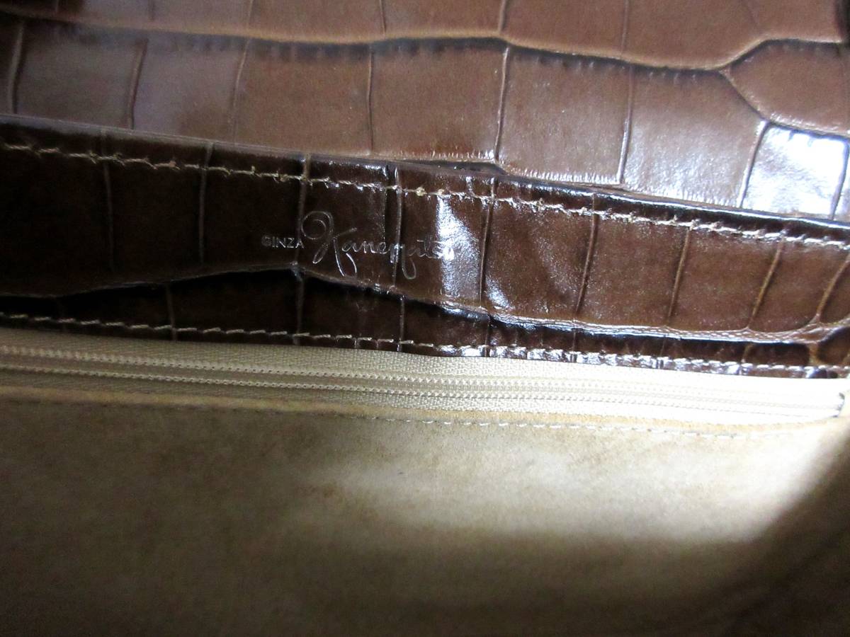 銀座かねまつ Kanematsu 型押し レザー ハンドバッグ 茶 ブラウン 南2580