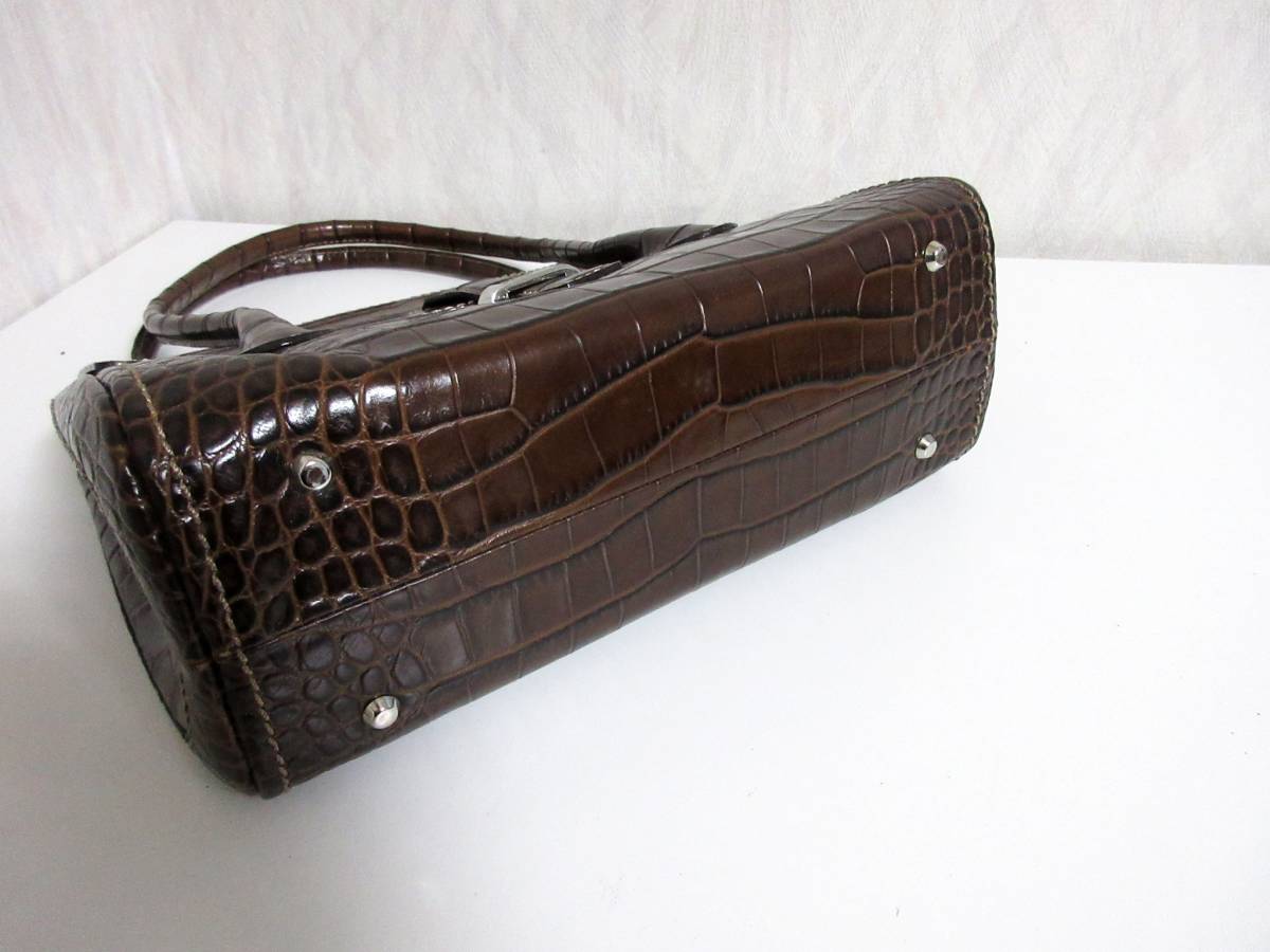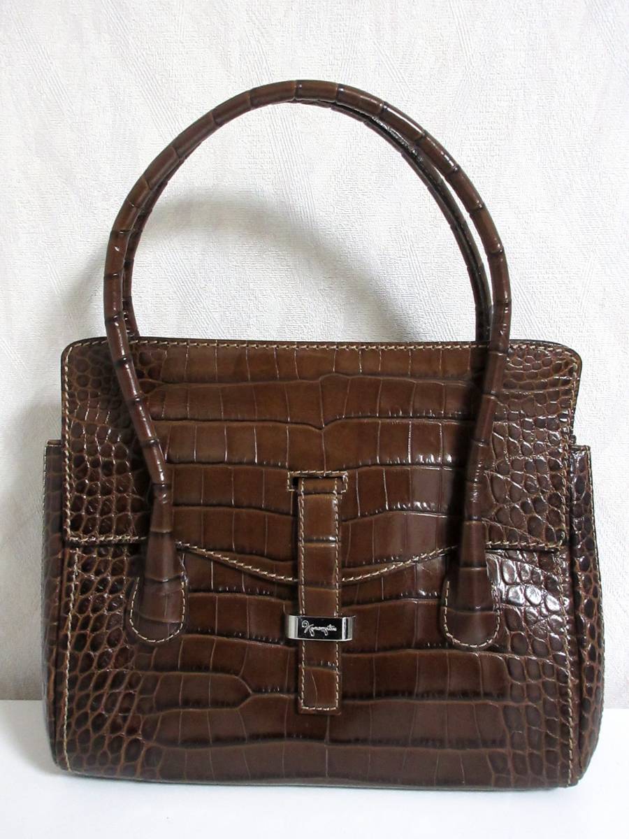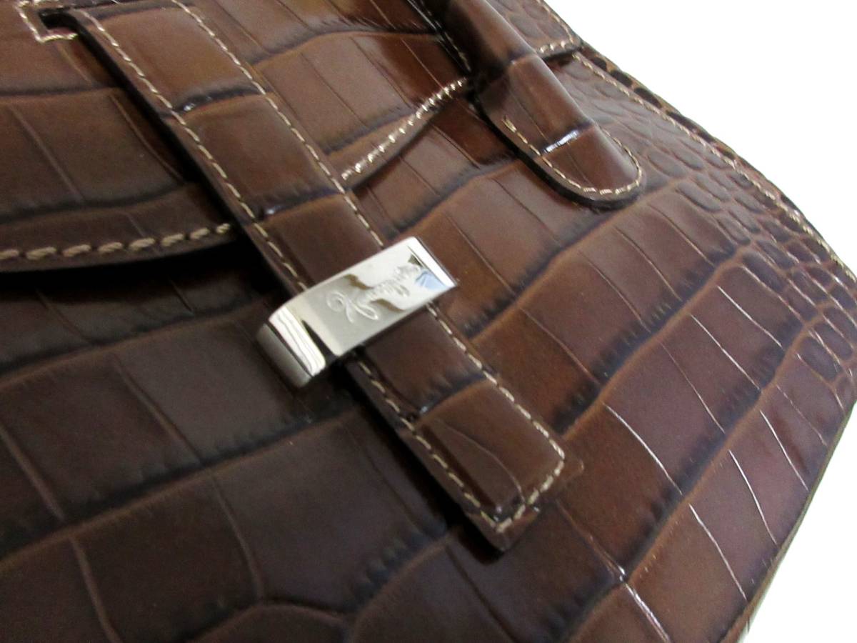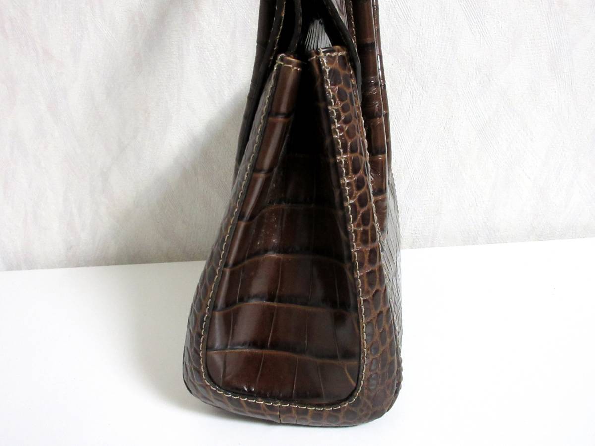 銀座かねまつ Kanematsu 型押し レザー ハンドバッグ 茶 ブラウン 南2580